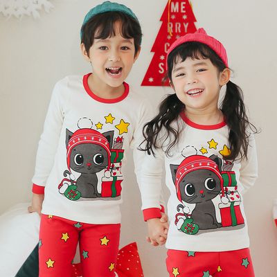 正韓 Puco - 超優質嬰幼兒/兒童長袖100% 有機純棉家居服/睡衣-聖誕貓貓