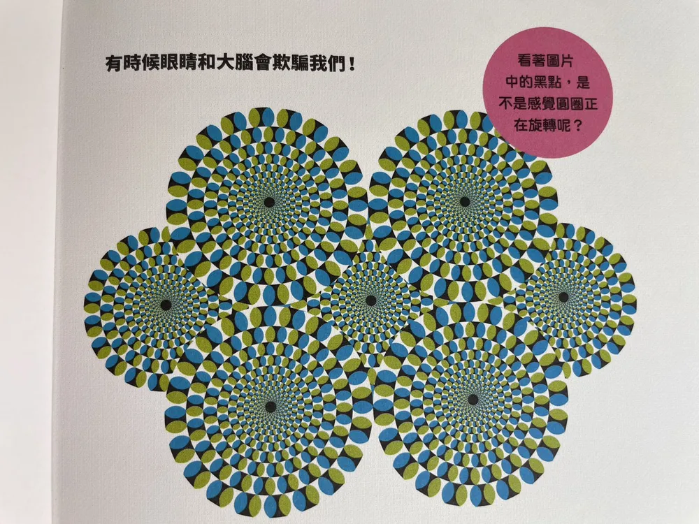 有時候眼睛和大腦會欺騙我們!(看著圖片中的黑點,是不是感覺圓圈正在旋轉呢?)