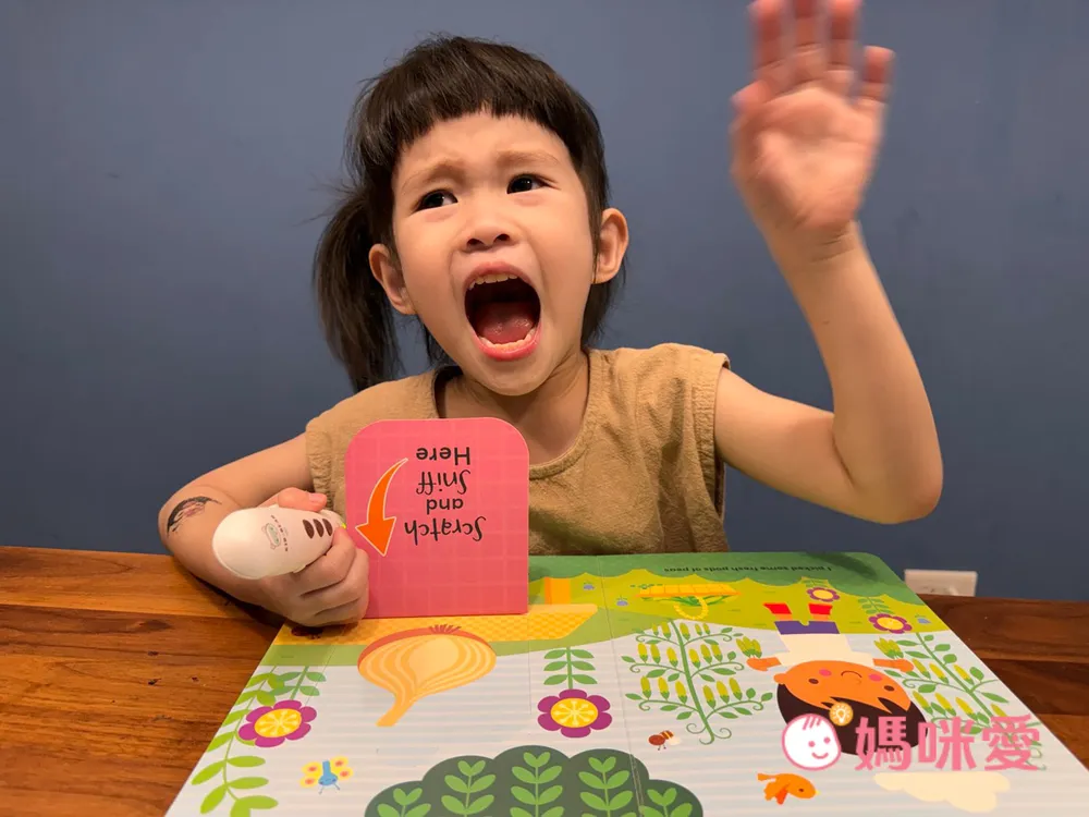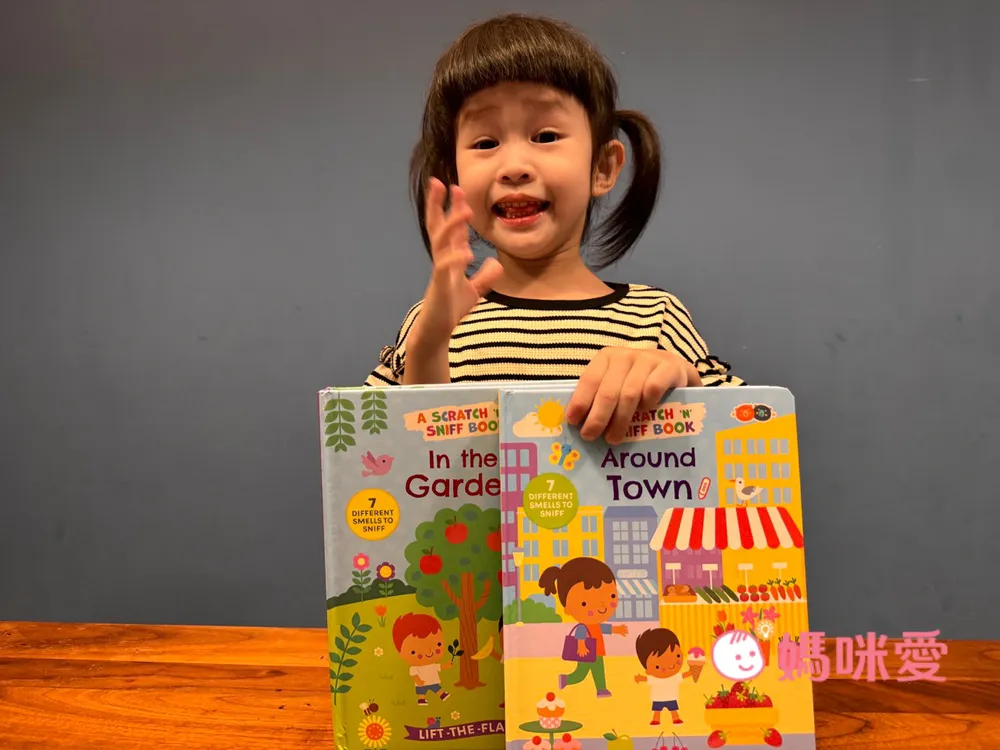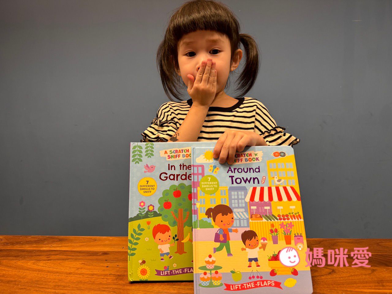 我們家中第一次出現有氣味的英語翻翻書!芙咪一聽到媽咪說書有味道時感到非常好奇,她疑惑著書本怎麼會有不同味道呢?