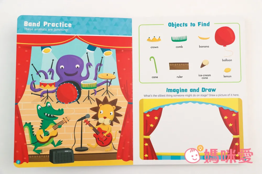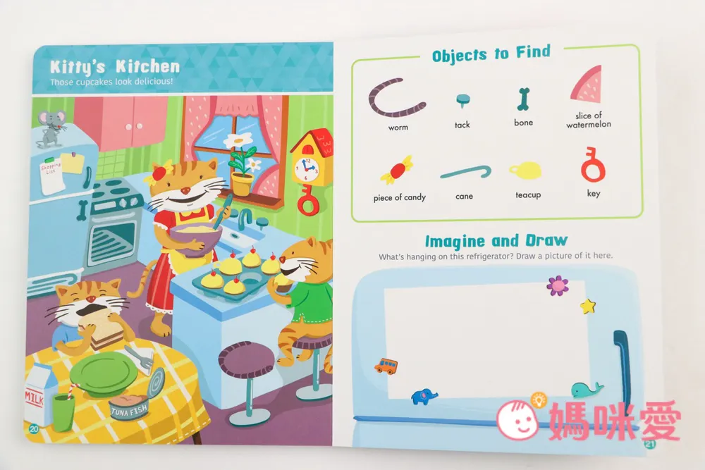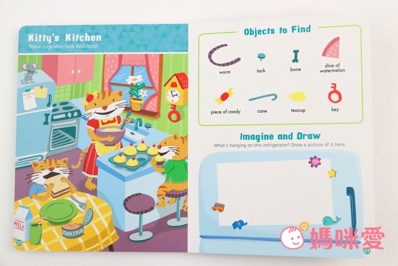 每一頁都將找找遊戲和單字學習融合,將物件隱藏在複雜有挑戰性的圖畫之中,小朋友們必須要運用自己的問題解決能力、細節觀察力和想像力,一邊找出物件,一邊認識英文單字!