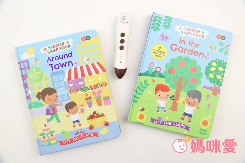 氣味翻翻書有兩種主題:《Around Town》、《In the Garden》。兩本書加起來有14種不同氣味!安全無毒+硬頁書材質+導圓角設計,可以放心地讓孩子去探索~