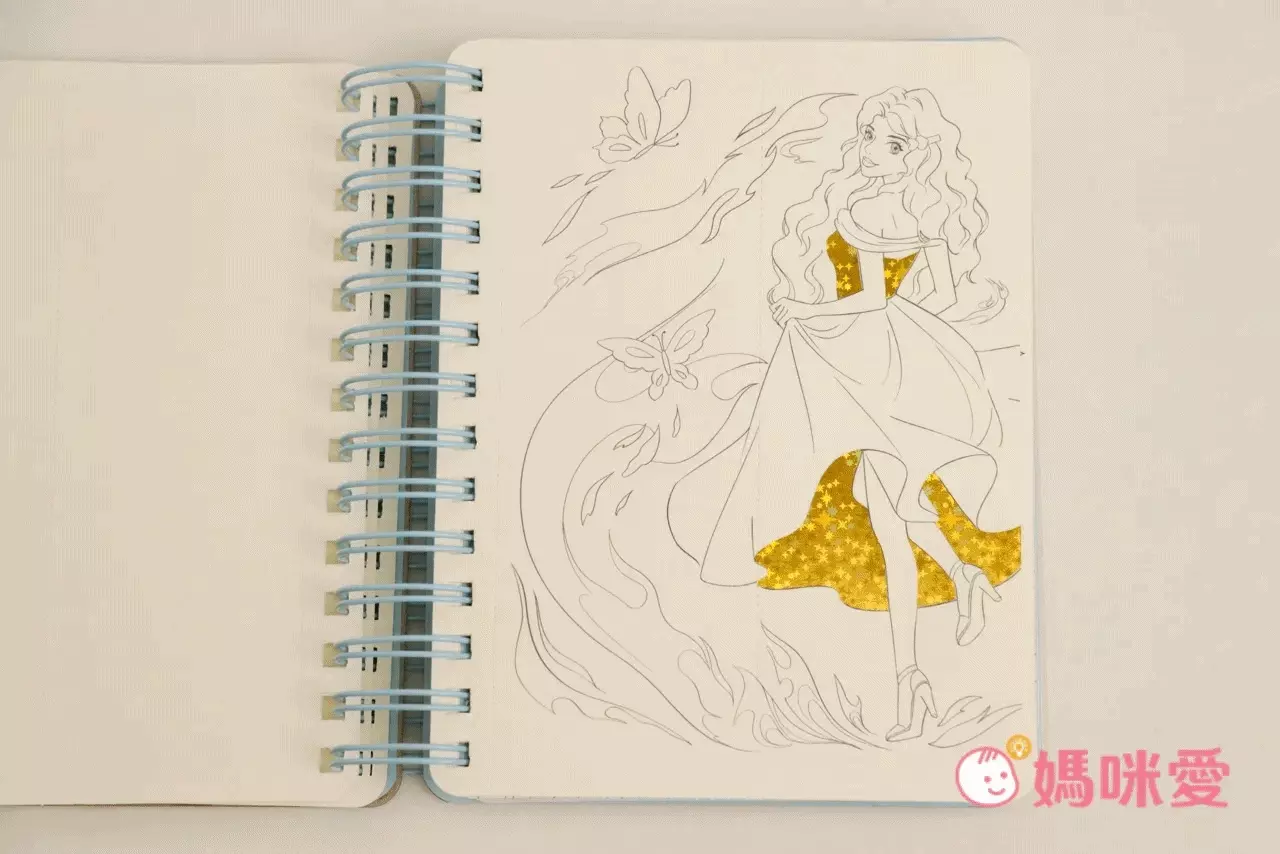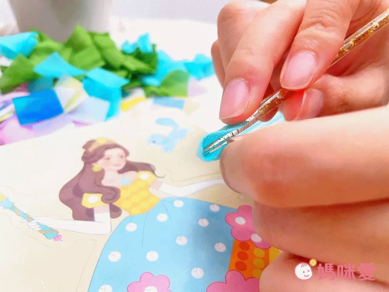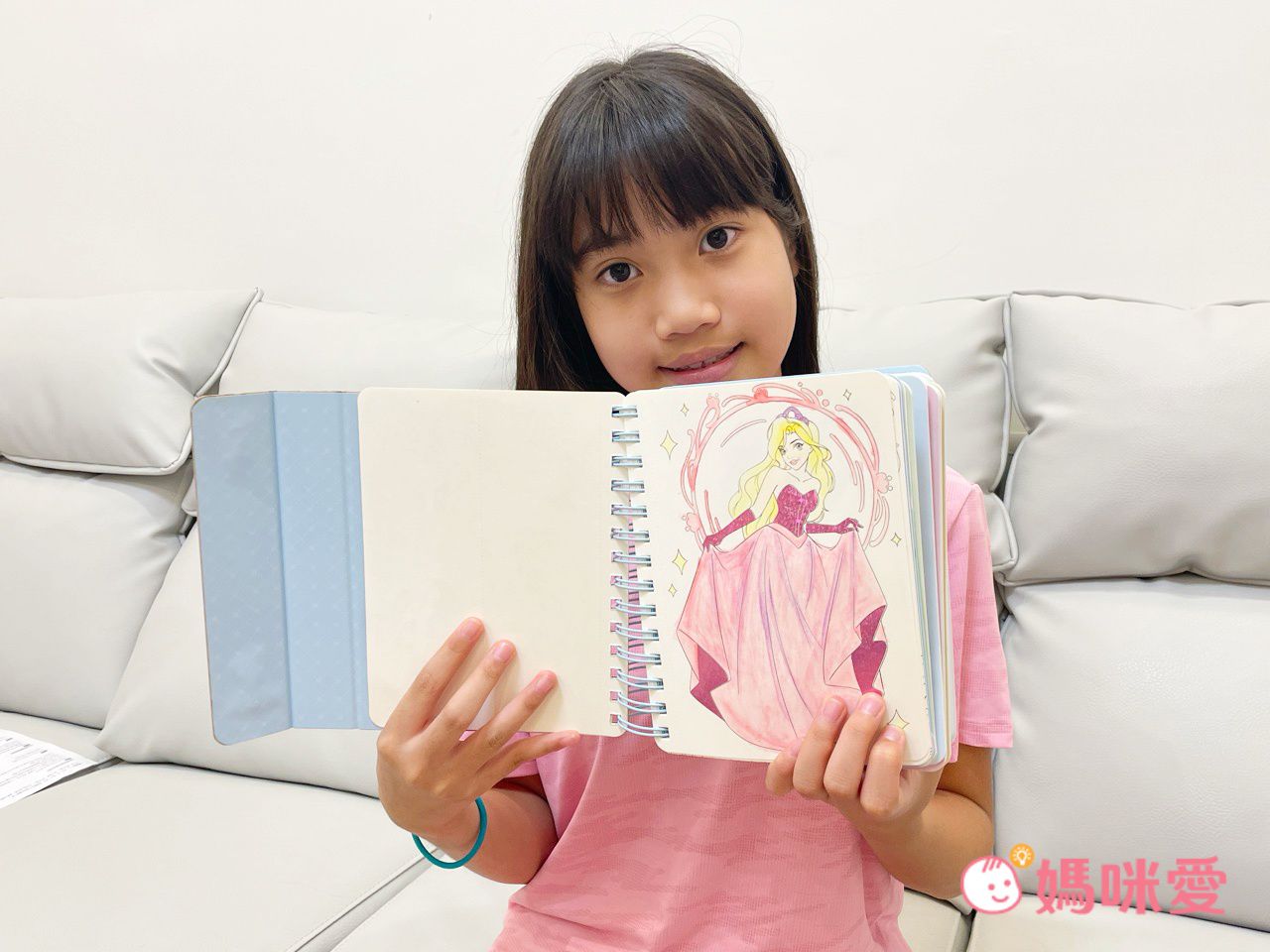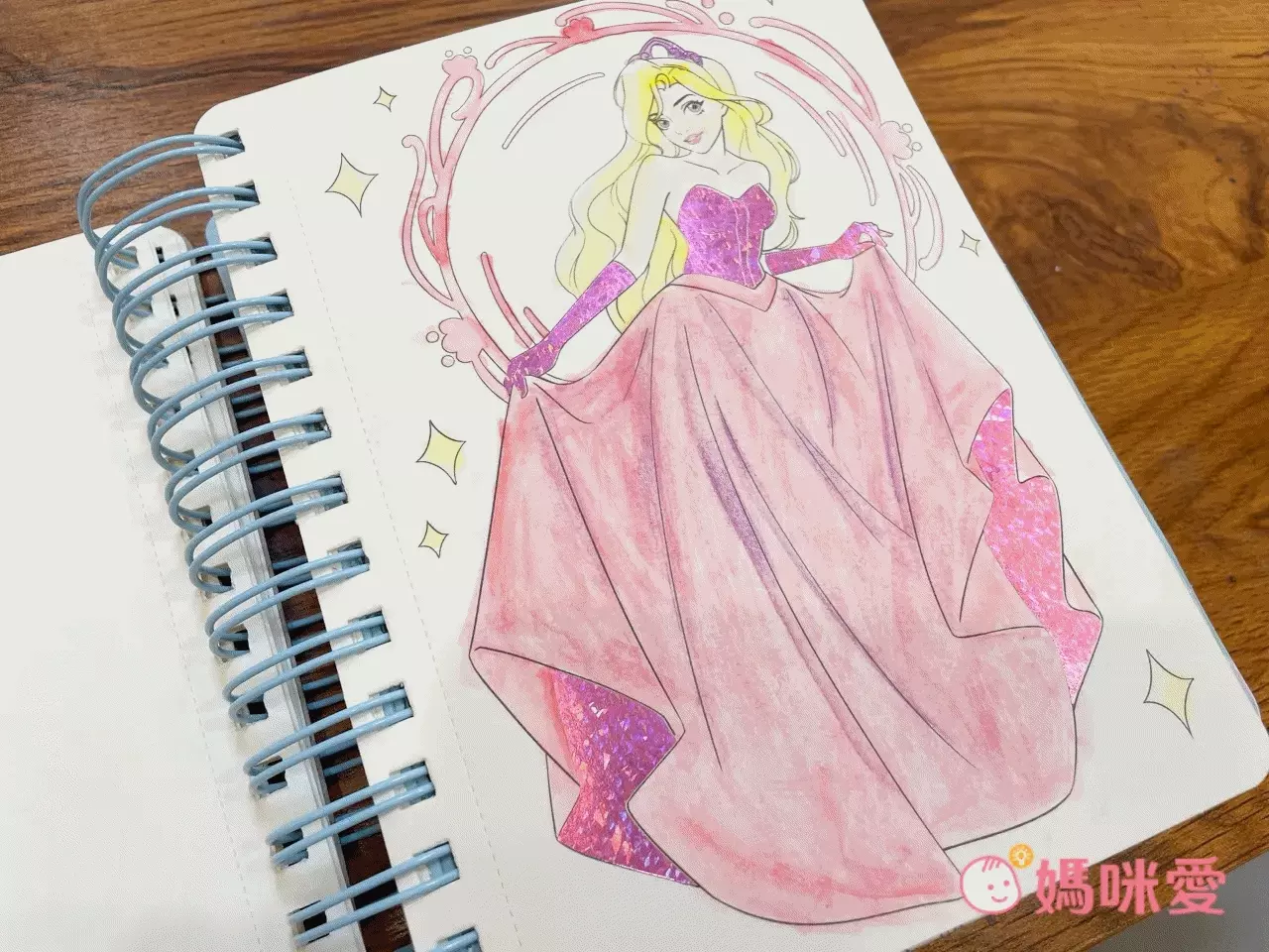 喜歡粉色的霈霈先挑有粉色亮片的公主開始作畫~