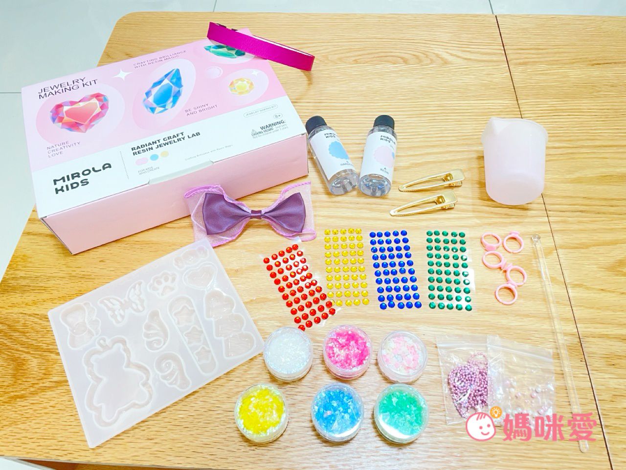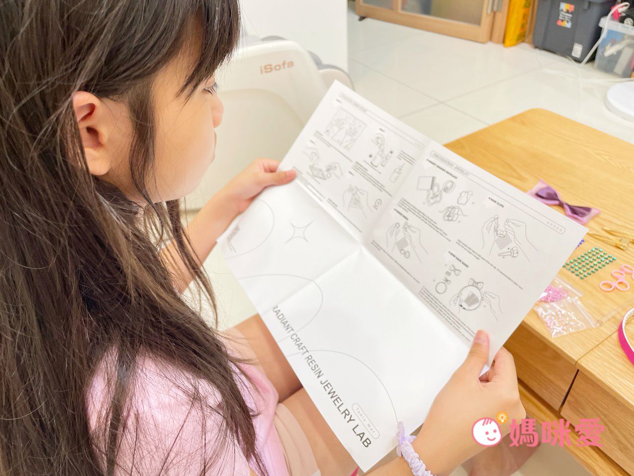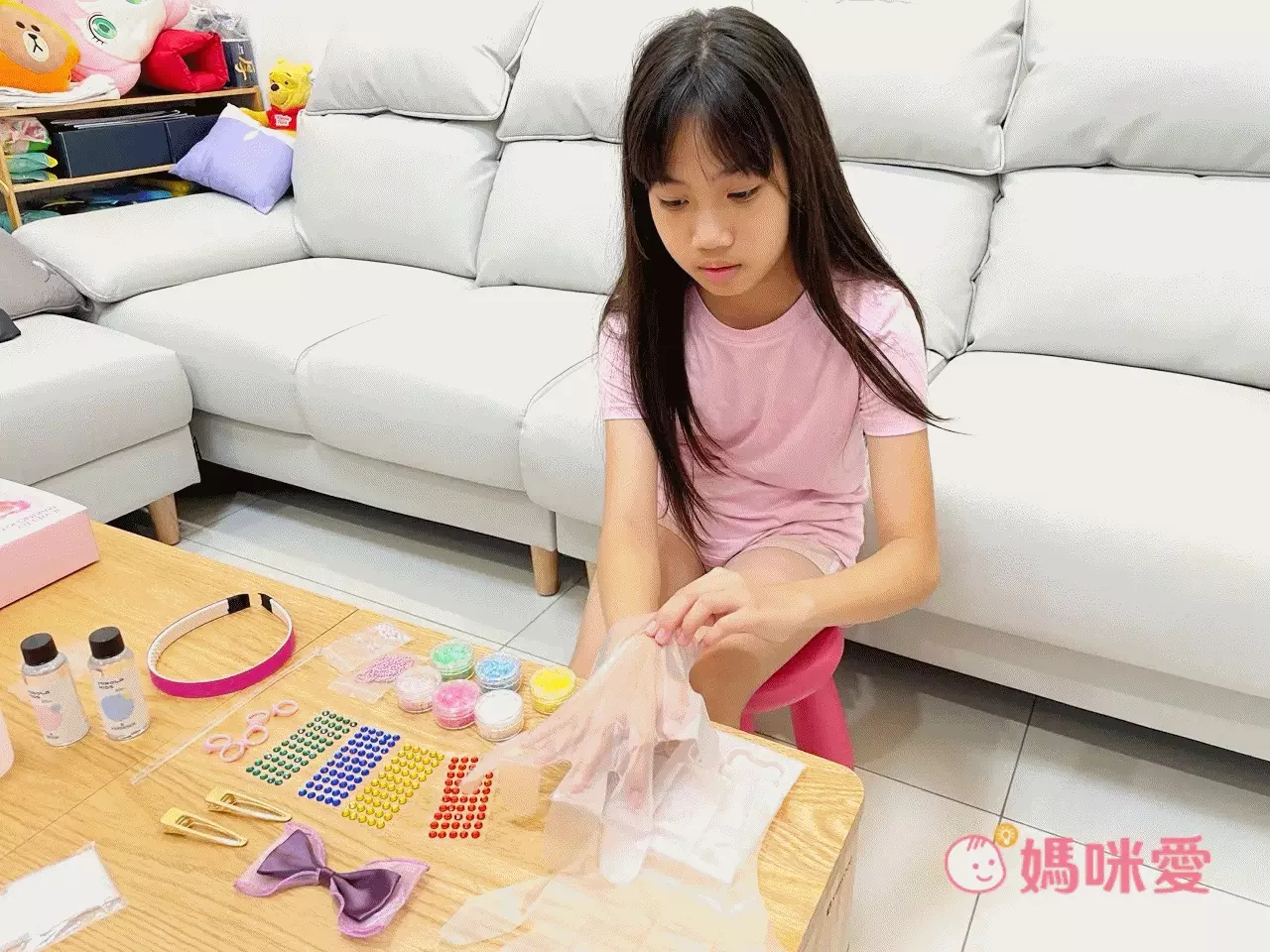 哪個女孩能抗拒閃亮亮的飾品呢?甚至可以自己親手做獨一無二的飾品!媽咪收到「兒童閃耀樹脂套組」後先藏起來,原本想說給霈霈一個驚喜,結果下班回到家,它已經被挖出來了><果然女孩的時尚雷達,非常敏銳!