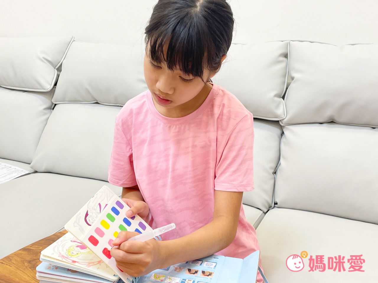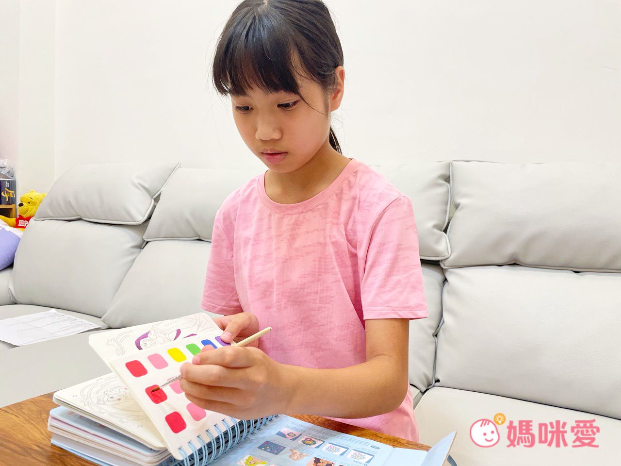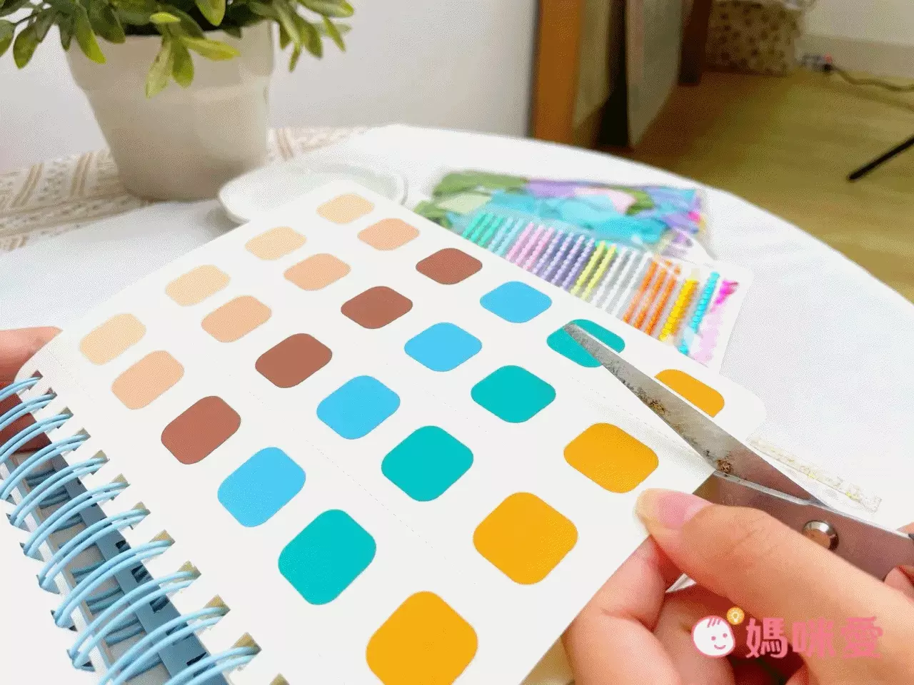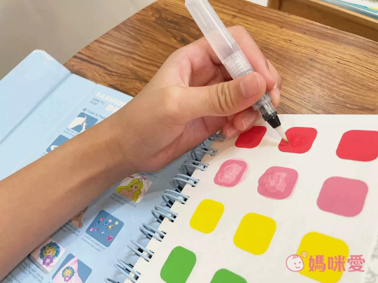 這個乾式顏料真的是爸媽的一大福音,再也不用買一堆顏色(省荷包)!滿足孩子創作慾的同時,又可以減少整理的麻煩。另外可以直接將顏料卡剪下,方便上色~