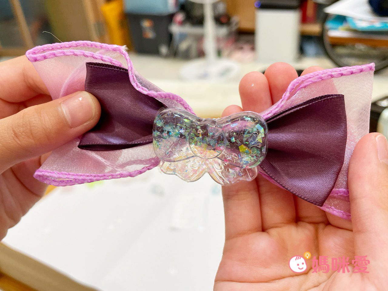 另外也可以將成品黏在蝴蝶結中間,再將整個蝴蝶結黏在髮箍上。