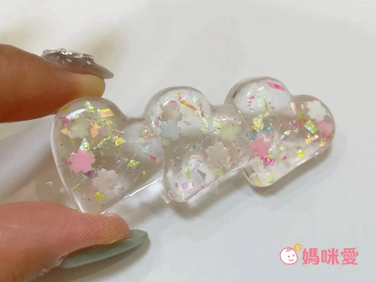 看看這個成品真的很美、很夢幻!外觀呈水晶般透明,放久了也不會泛黃,而且也沒有很重的氣味。