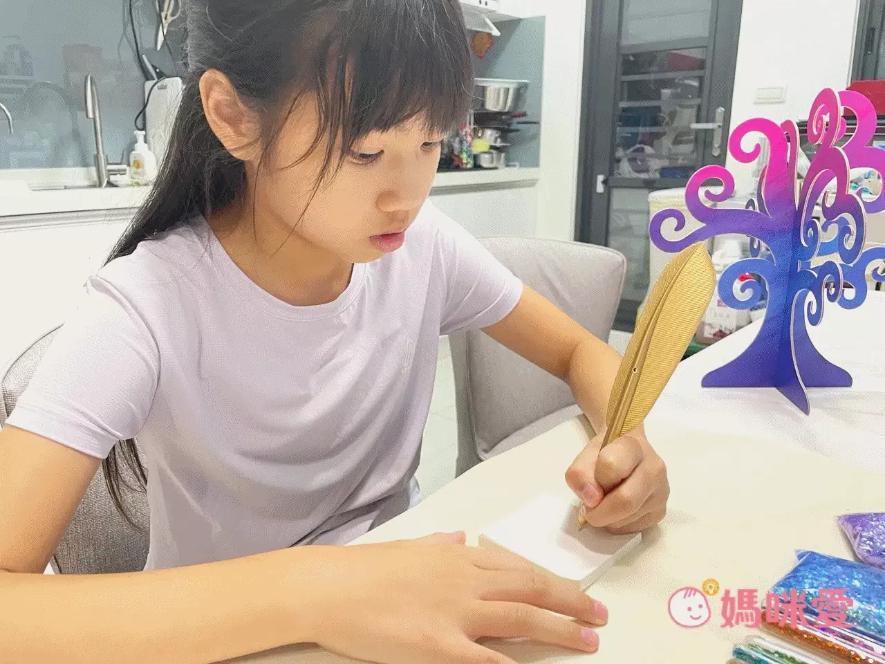 當霈霈自己完成圖畫時,覺得成就感滿滿!而且圖畫本身的亮片點綴,讓畫面更加有重點~