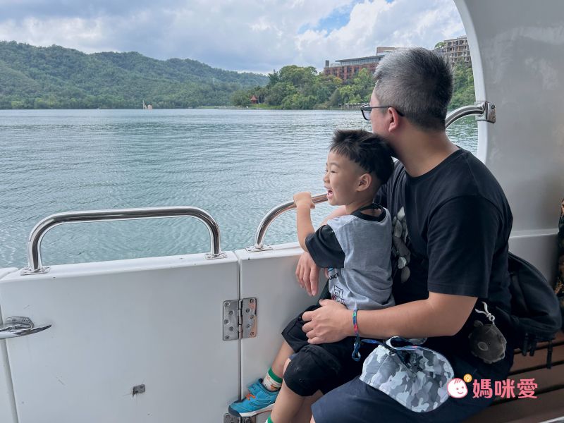 船長會一邊開船一邊導覽日月潭的風景和歷史,王紅和爸爸則是在船尾的地方享受水上的風,船在開動的時候真的很舒服涼爽呢!