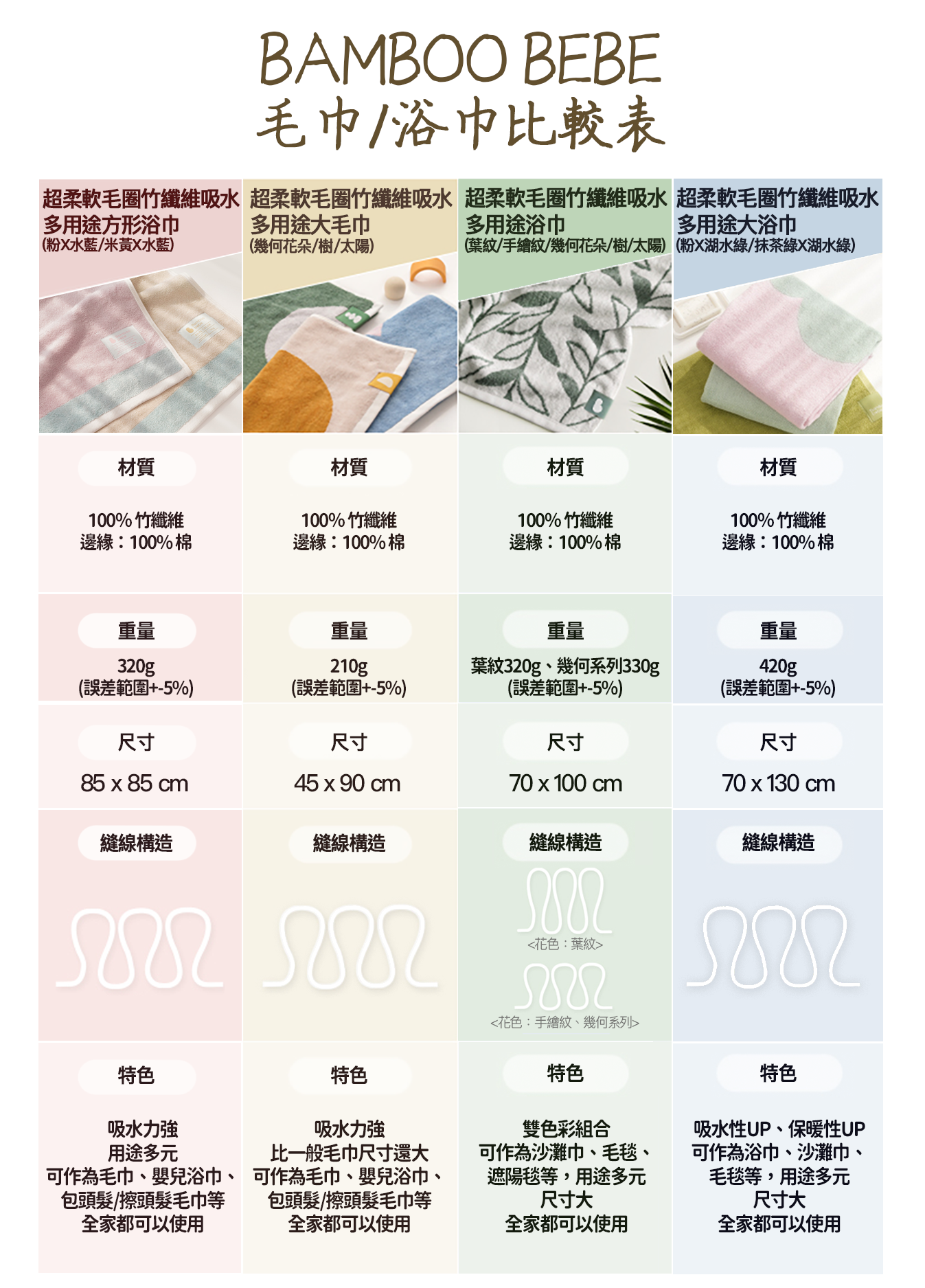 2.每條浴巾的實際尺寸可能會有±5%的差異哦!