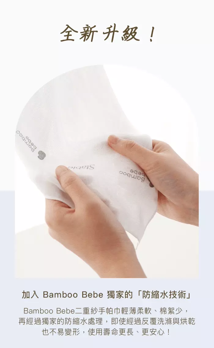 二重紗多用途手帕巾成分也是一開始提到的最佳混合比例:70%竹纖維+30%棉製成,肌膚輕觸即可感受清爽感~