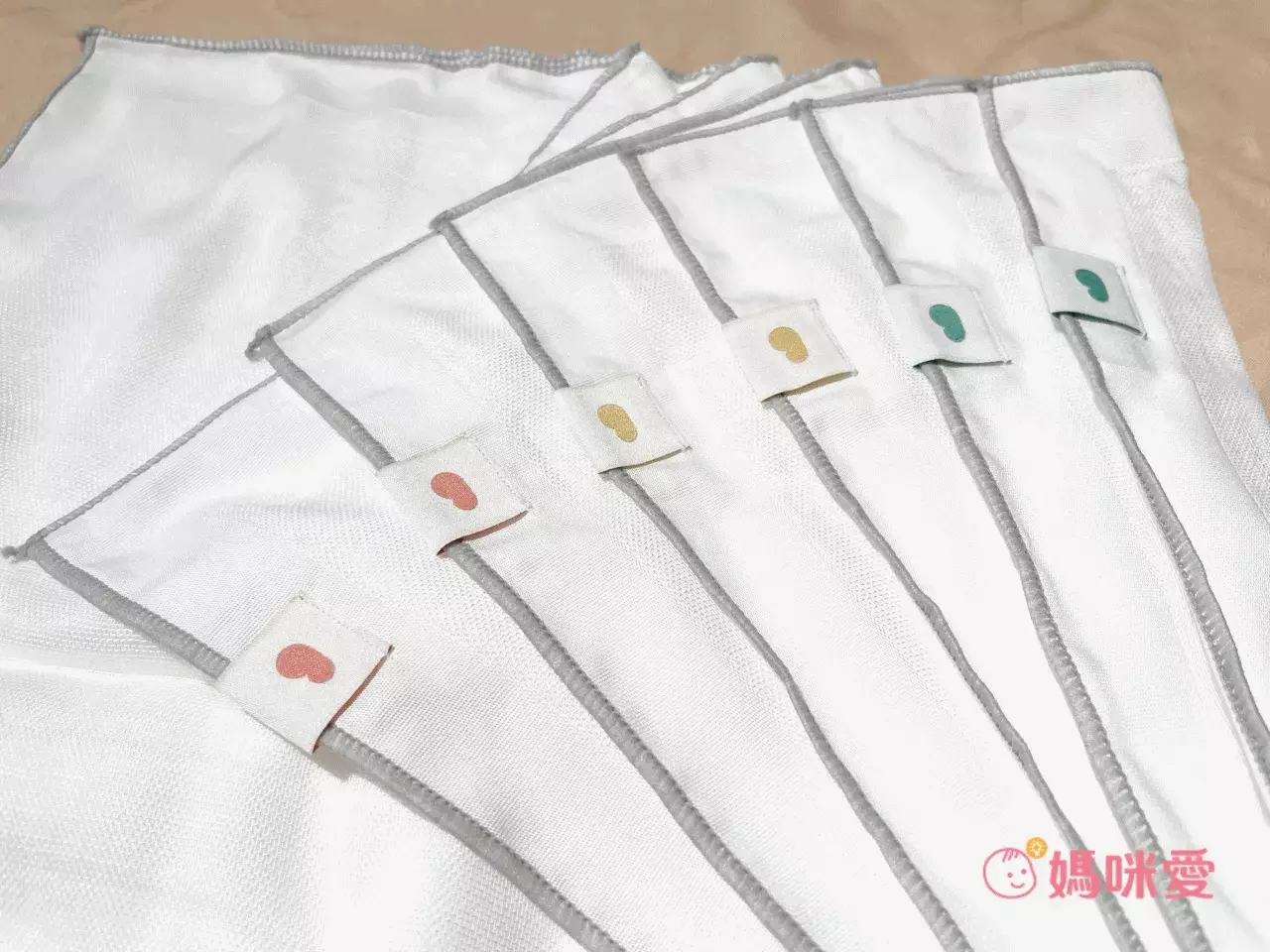 每條手帕巾上還有Bamboo-bebe不同顏色的LOGO標籤。