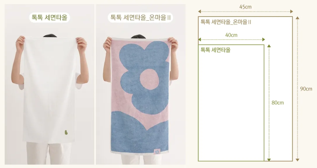 跟一般毛巾相比,90x45大尺寸,用途更廣泛,材質也一樣柔軟、吸水性佳。