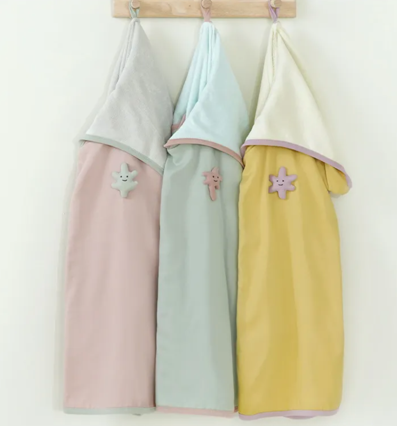 可愛的連帽讓孩子在洗澡或玩水後也能免受寒冷~