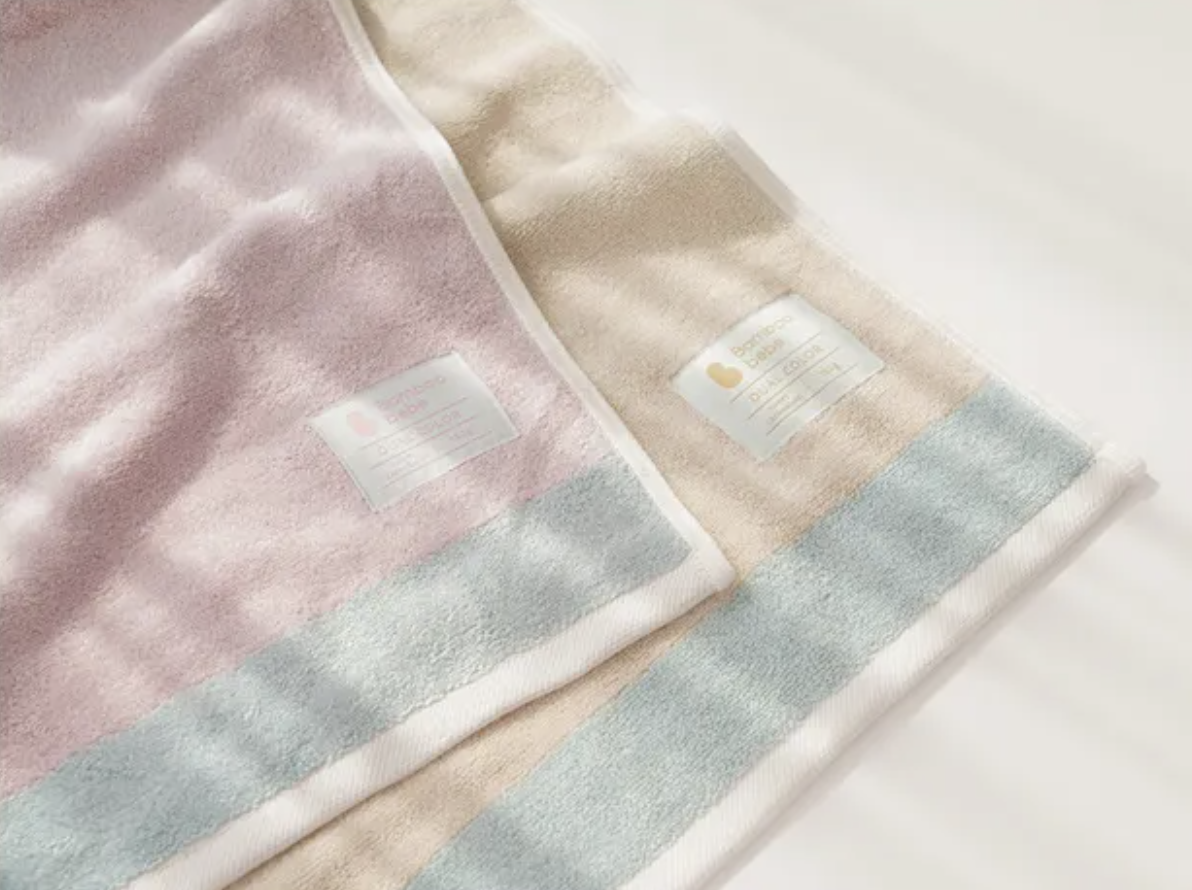 這款浴巾的正反面材質為100%竹纖維製成,同時也適合拿來當作夏天的玩水沙灘巾、居家小睡毯。