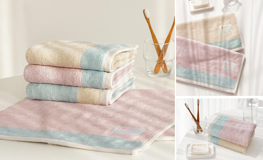 配色柔和、觸感柔軟,吸水性很好,當作洗臉毛巾、吸水毛巾都很好用。