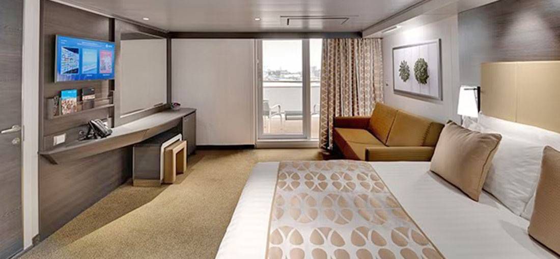 享有私人陽台(部分視野會被救生艇或船體結構遮蔽)可隨時沐浴陽光,“面朝大海,春暖花開”,配備獨立陽台與躺椅,讓每天飛舞的浪花帶著你入眠,讓清新的海風伴你起床。