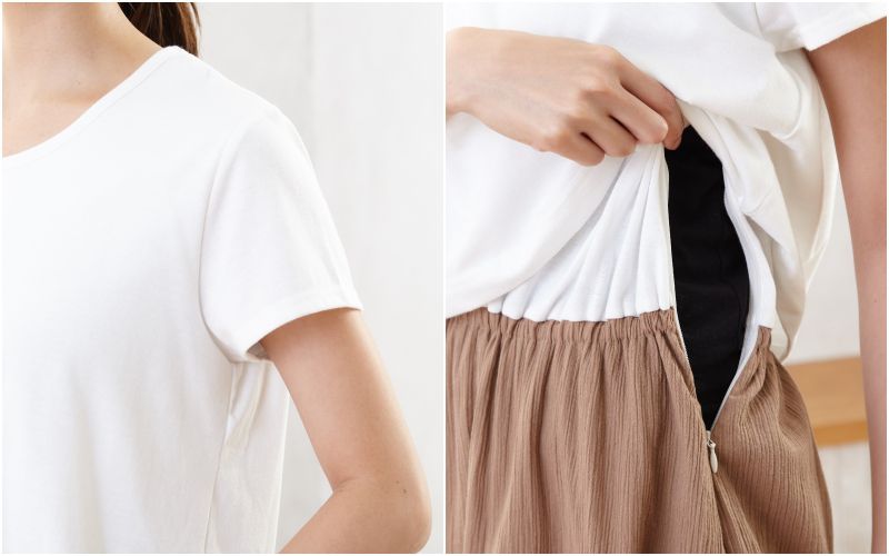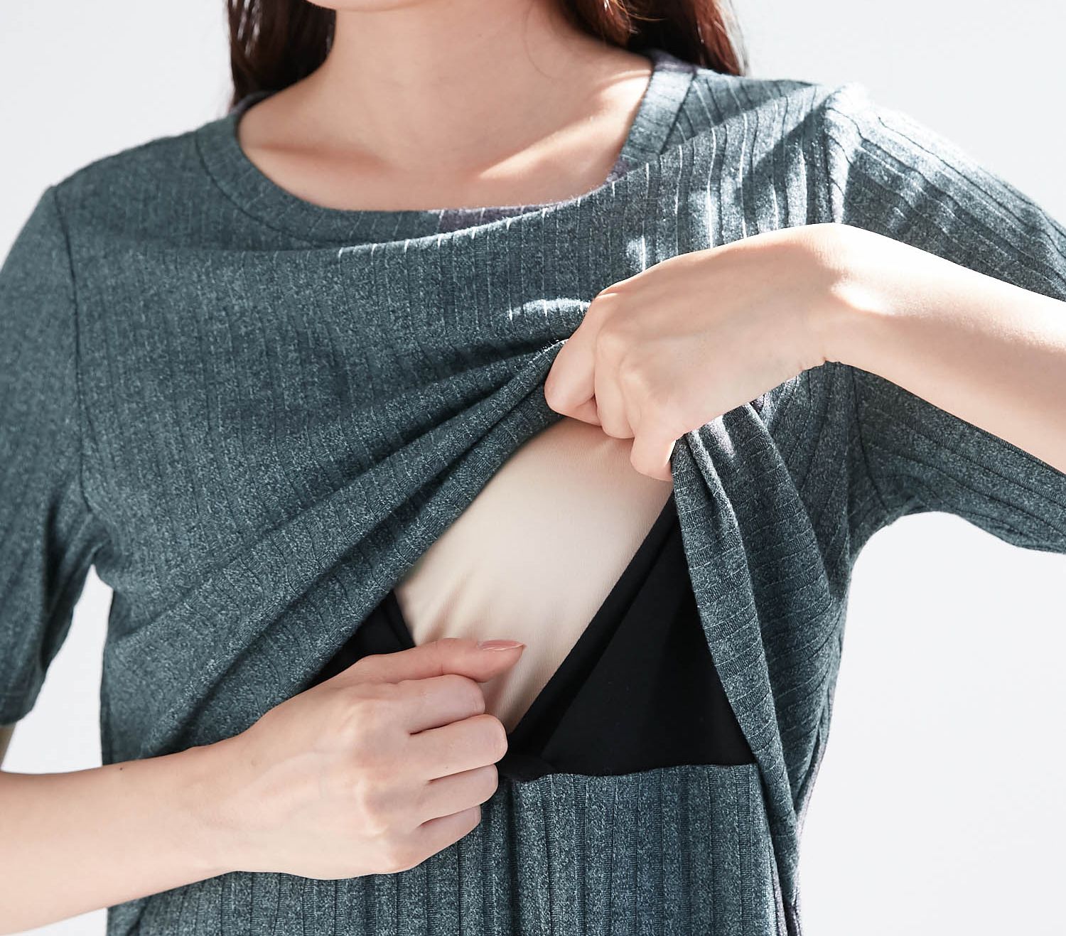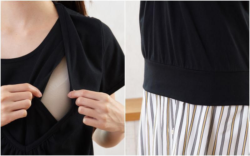 洋裝側邊同樣做有開口,方便媽咪哺乳喔~