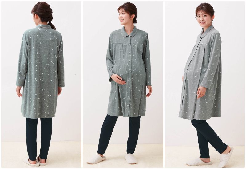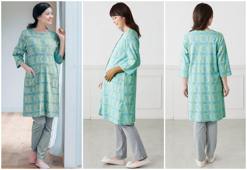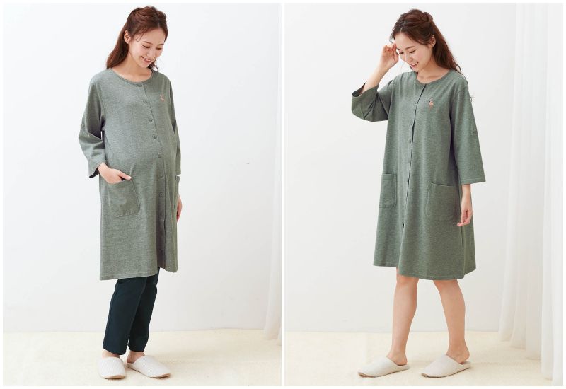 長版睡衣款式,也是編媽懷孕時喜歡的~不管在家裡、醫院都能輕鬆穿著~而且花色也很可愛,帶給媽咪好心情:)