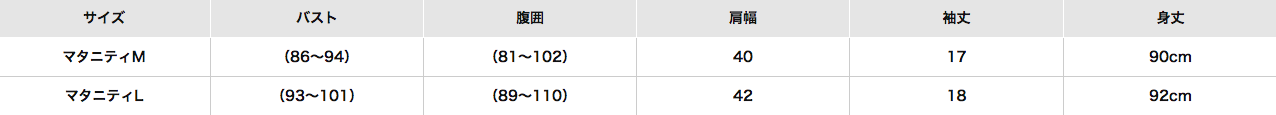 尺寸表如下,由左而右依序是尺寸、胸圍、腹圍、肩寬、袖長、全長,供媽咪參考唷~
