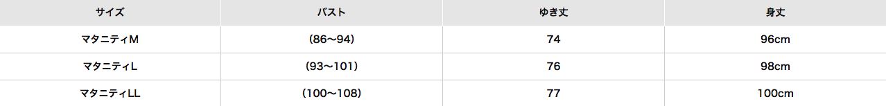 尺寸表如下,由左而右分別是尺寸、腹圍、全長,供媽咪參考唷~