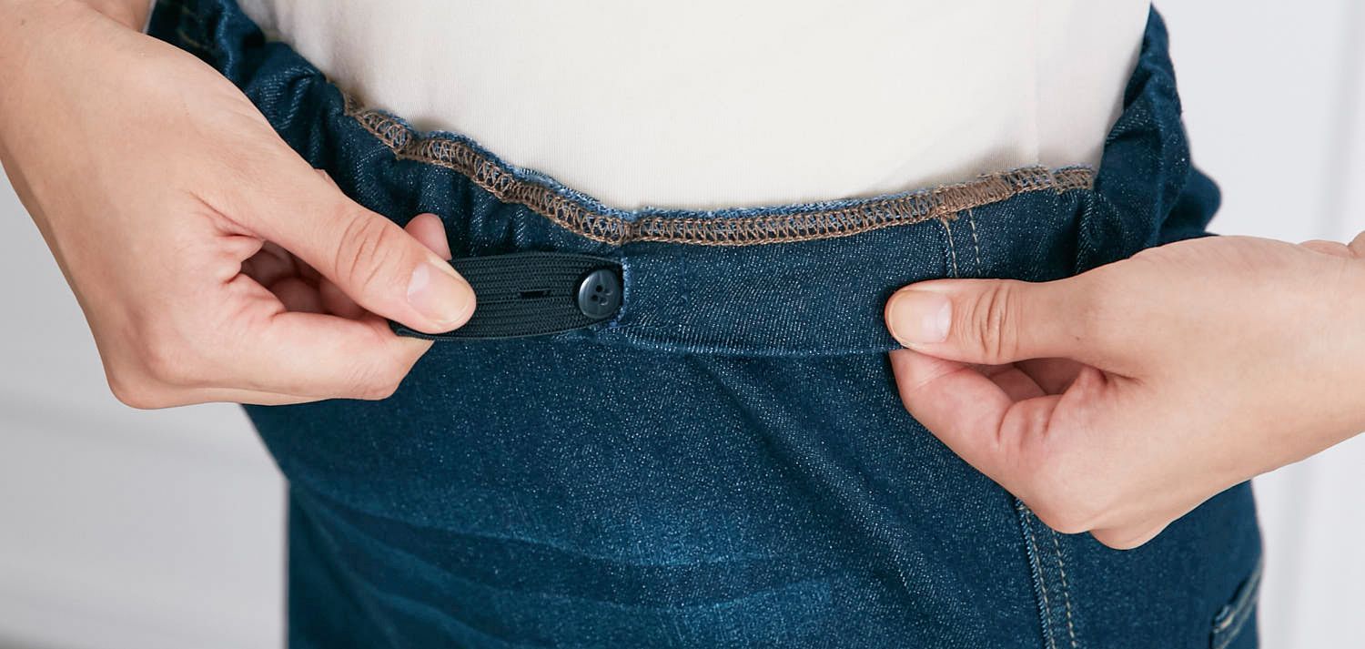 選用高彈力的材質,適應腰圍和孕肚的大小變化,不會勒緊緊不舒服,卻又筆挺有型。