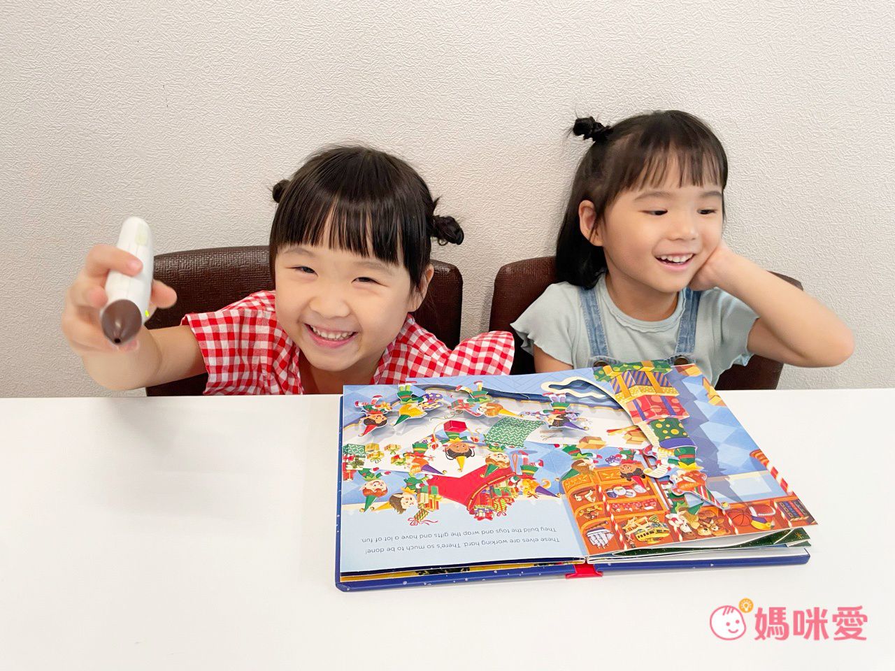 至少在我們家孩子身上,我看到她們因為好奇而想把每個立體人物點點看會聽到什麼、還會仿說,也會問這是什麼意思?不知不覺一些英文口語的句子就慢慢地帶入生活中,覺得這就是最棒的無壓力學習了!