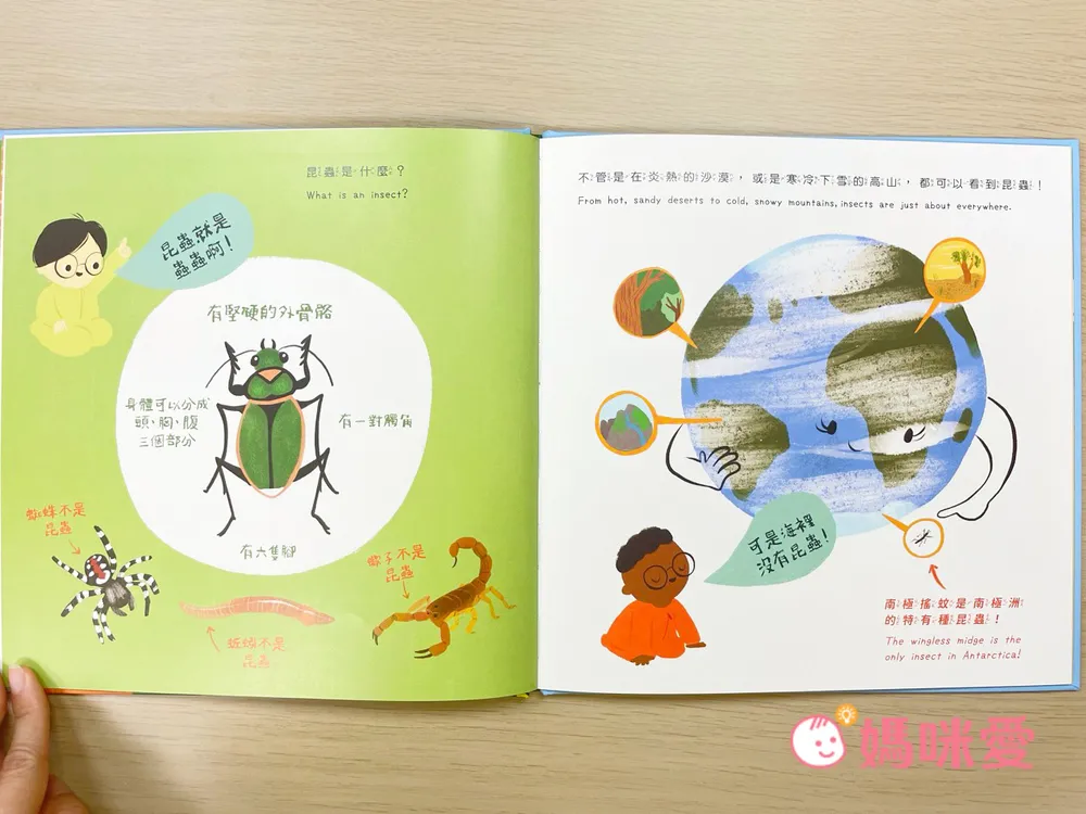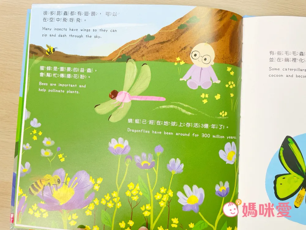多樣的昆蟲介紹:書中涵蓋了各種孩子耳熟能詳的昆蟲,如蝴蝶、蜜蜂、瓢蟲,以及一些不那麼常見但同樣有趣的昆蟲,讓孩子學到昆蟲的多樣性。
