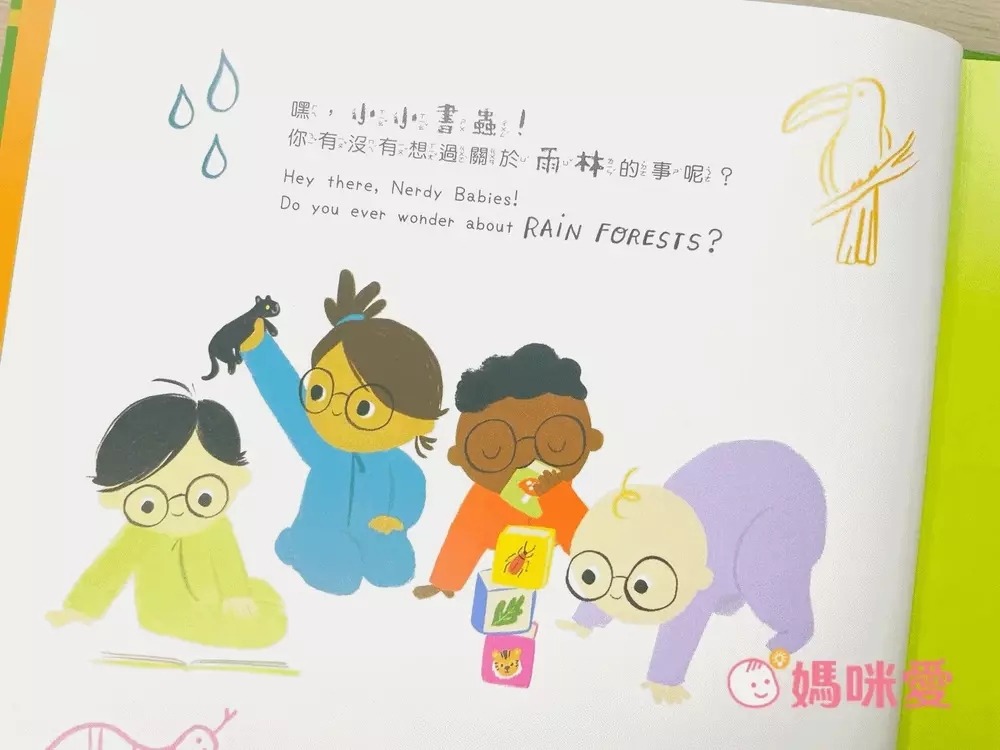 學齡前的孩子學習特性在於多感官刺激,利用眼睛看、耳朵聽、手指觸摸等各種多元方式吸收知識。這套書翻譯自美國知名作者Emmy Kastner為學前幼兒設計的科普啟蒙Nerdy Babies系列繪本。