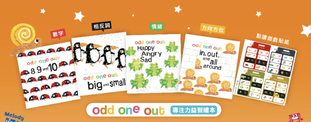 《Odd One Out 英文益智點讀繪本》結合遊戲、學習與互動,是專為初學英文的兒童設計的優質繪本,不僅能讓孩子快樂地學習英語,還能提升詞彙量、專注力與自主學習能力,是孩子英語啟蒙階段的最佳選擇!透過點讀功能的獨立操作,更能訓練孩子培養自主學習的能力和動機。