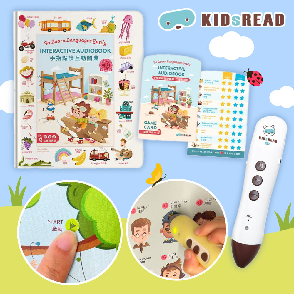 業界首見👑這是KIDsREAD首次推出有手指互動的點讀書欸❗❗藉由手指+點讀筆讓孩子輕鬆認識300+個單字,而且一個單字還能聽到『中、英、法』三種語言(太優秀了👏)!