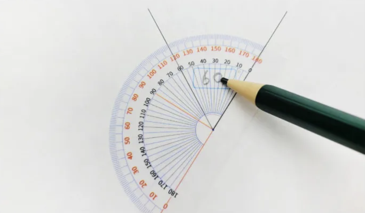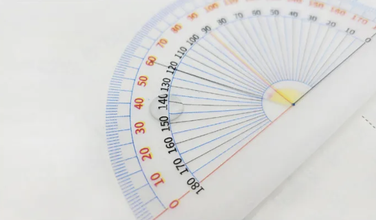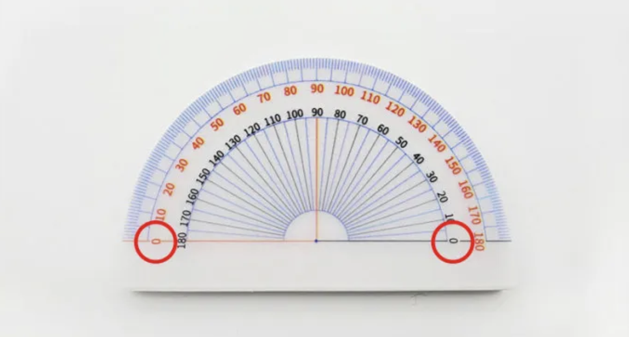使用方式:撕下一張便利貼->將量角器中心點對準要測量的角的端點、0度線對齊形狀的其中一個邊->沿著形狀的另一條邊線,查看與0度那一側相同字色的刻度數字。