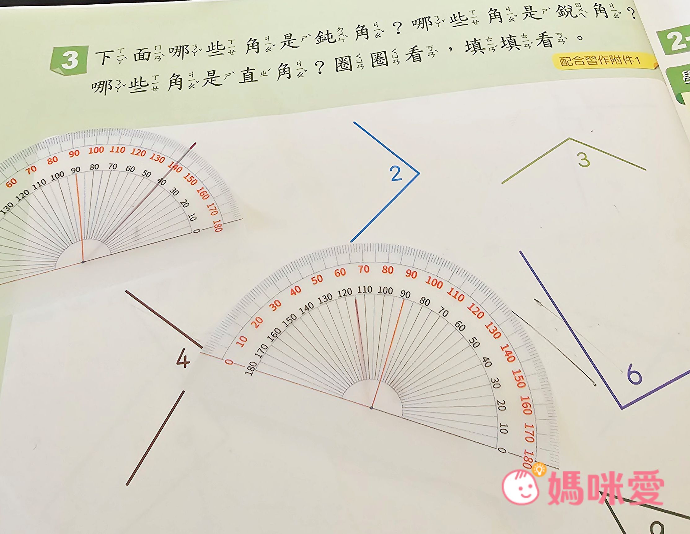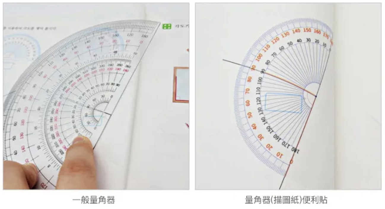 常常遇到孩子會把塑膠量角器搞丟或是寫題目量角度時不小心會動到就會很難量出正確角度⋯⋯如有遇到類似情況,那這個便利貼真的非常適合孩子使用哦~!!