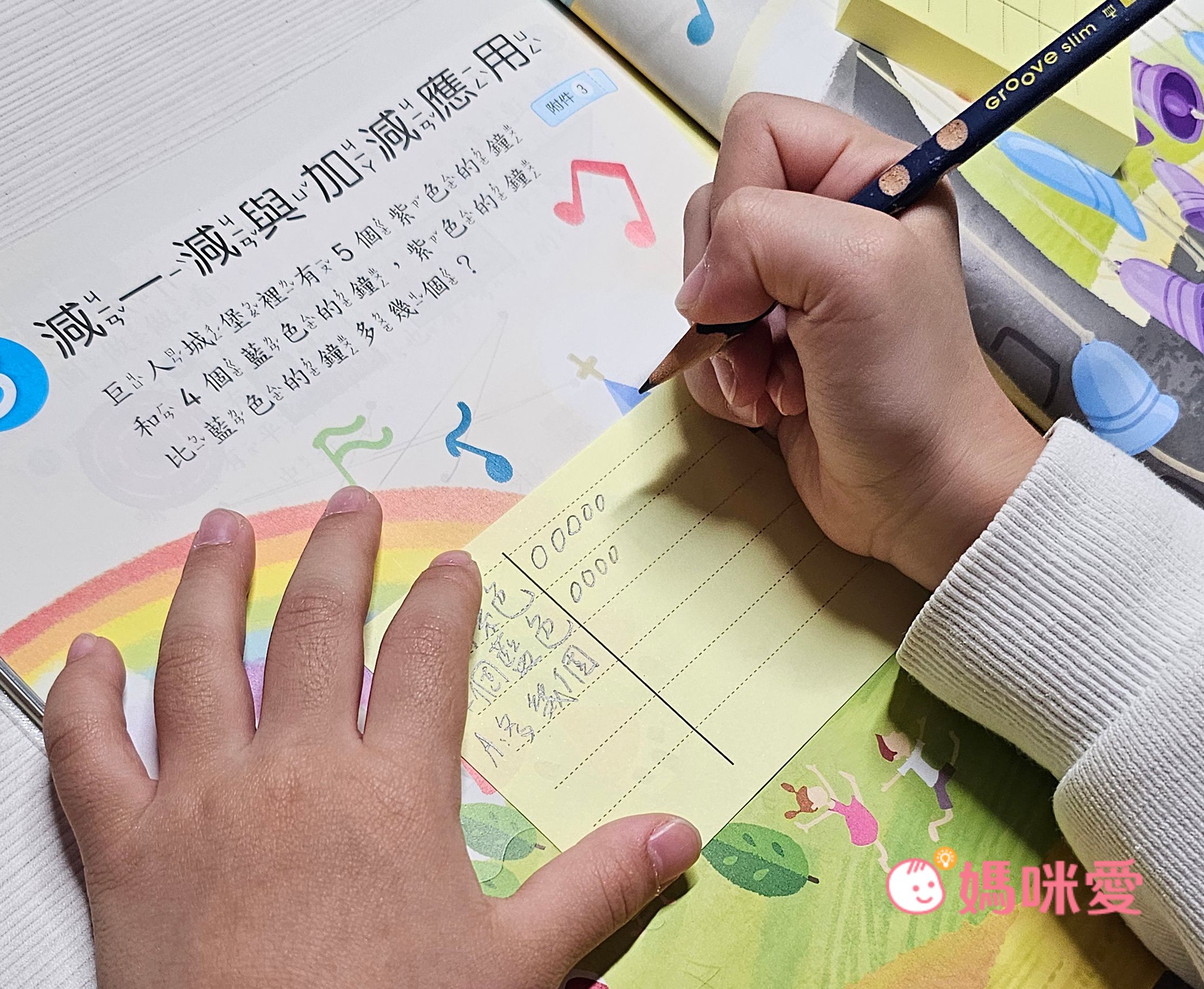 像如果要考試了⏰想練習以前寫過的題目,只要拿一張便條紙把算式蓋住,就能再重新寫一遍,方便孩子複習!