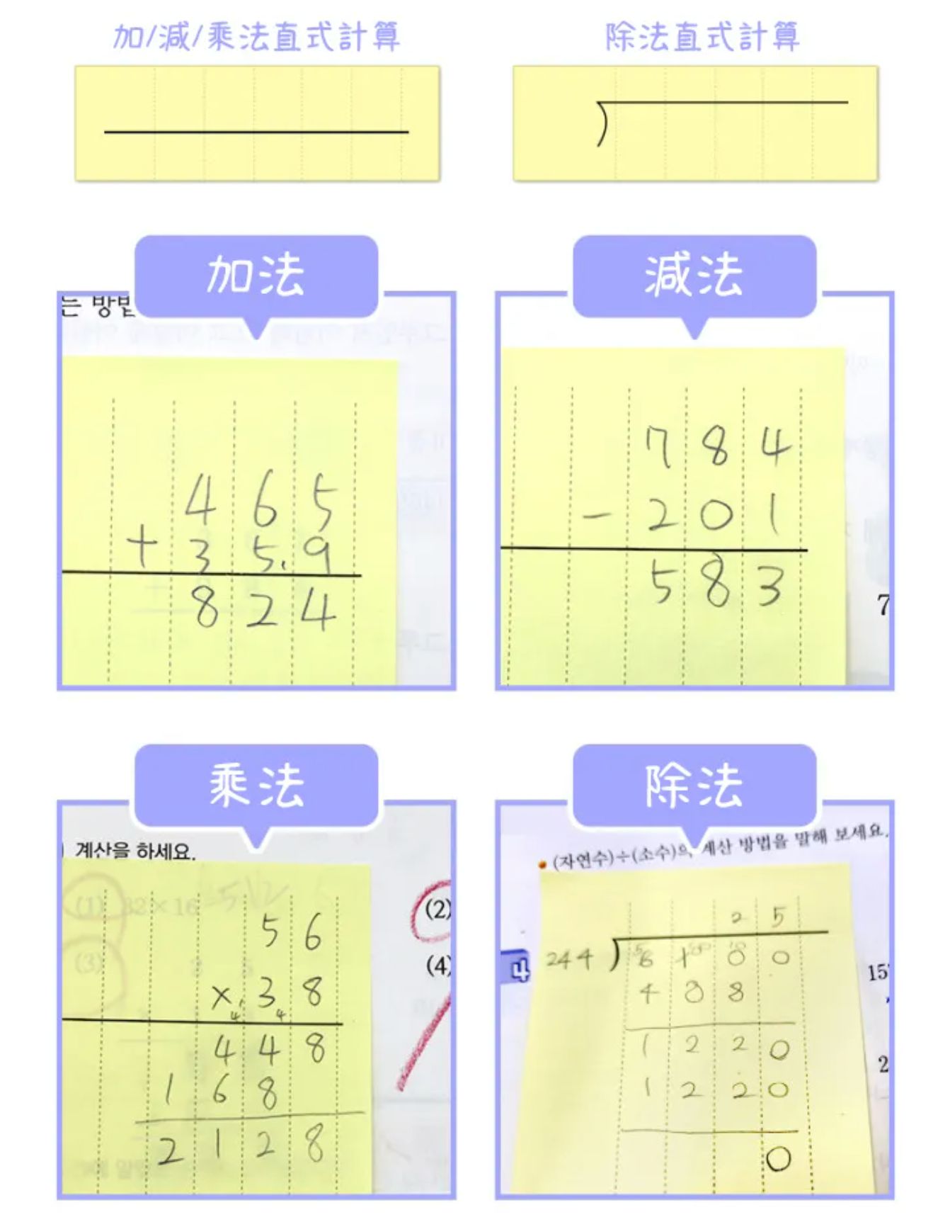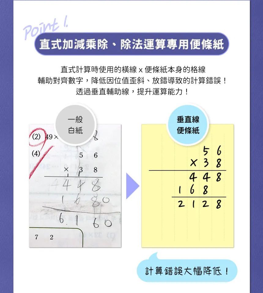 常常很多學生會在直式運算時出錯,還不熟悉數字要放在哪裡才對;或算式滿滿的數學考卷根本沒地方訂正😱這時有張便利貼真的就解決了~
