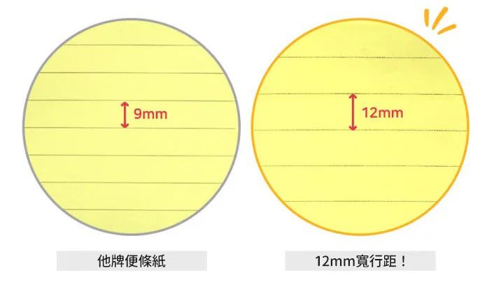 這款就沒有上述的問題🫶而且低年級的孩子手部肌肉仍在熟悉運筆、熟習筆順,所以這時期的孩子字跡相對較大,如果使用12mm寬橫線便條紙也讓孩子方便書寫,字夠大也能看得清晰!