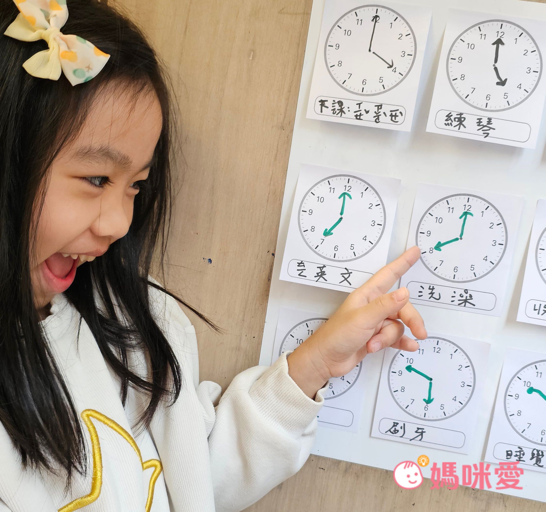 發現20:00了!妹妹趕緊跑到行程表前看看接下來要做什麼⋯⋯啊!該洗澡了🤣