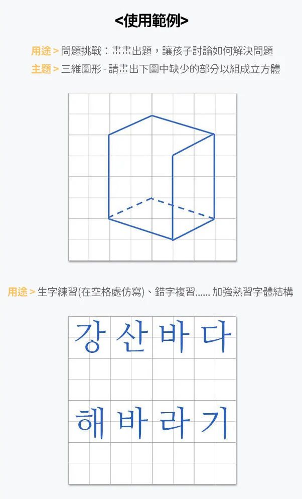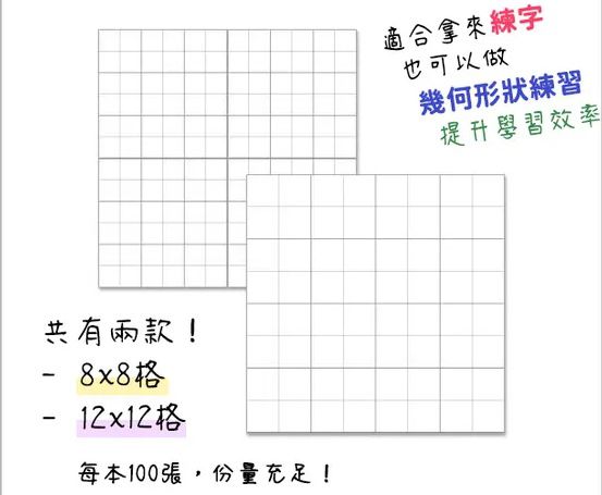 8x8格使用的情境可以是:生字練習、問題挑戰、三維圖形等等,讓孩子用一張便條紙就能輔助學習!很實在~