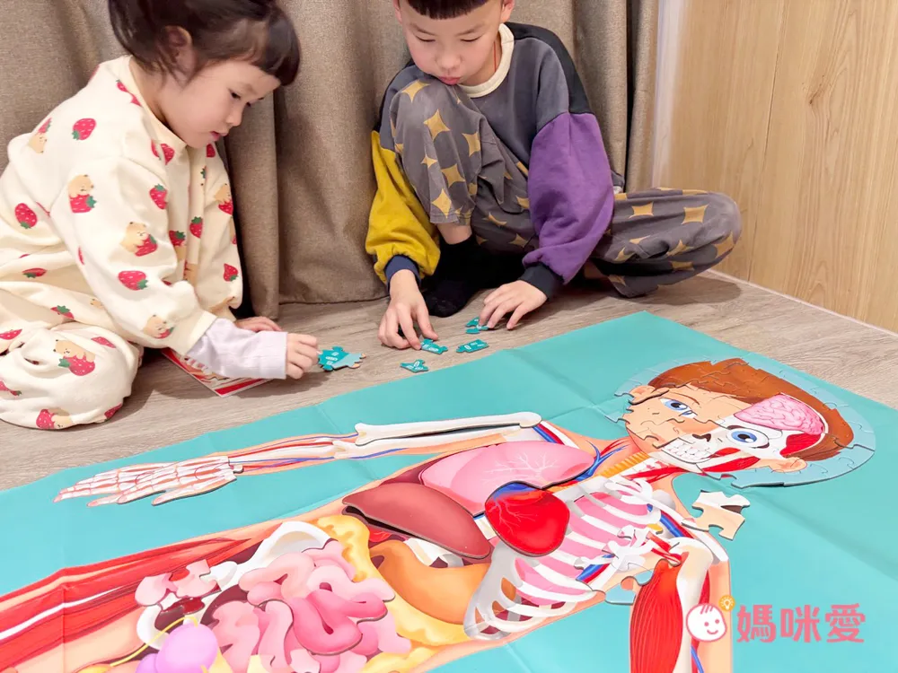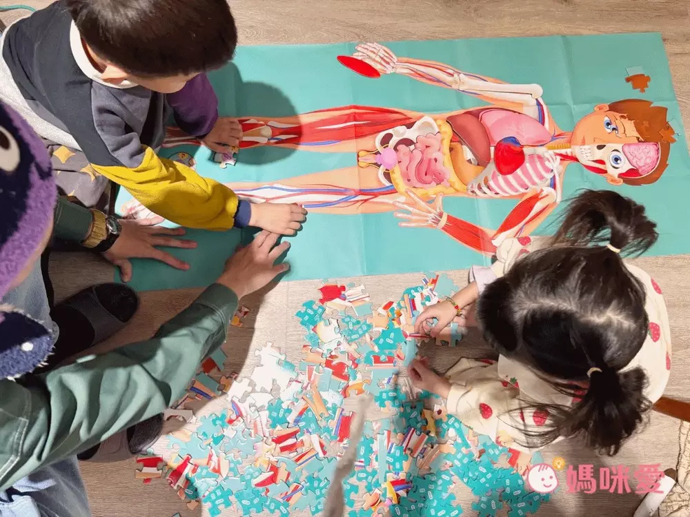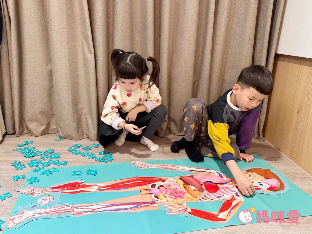 拼拼圖的過程除了認識器官、認識英文,一個下午兄妹倆也訓練到了團隊合作👍![]()