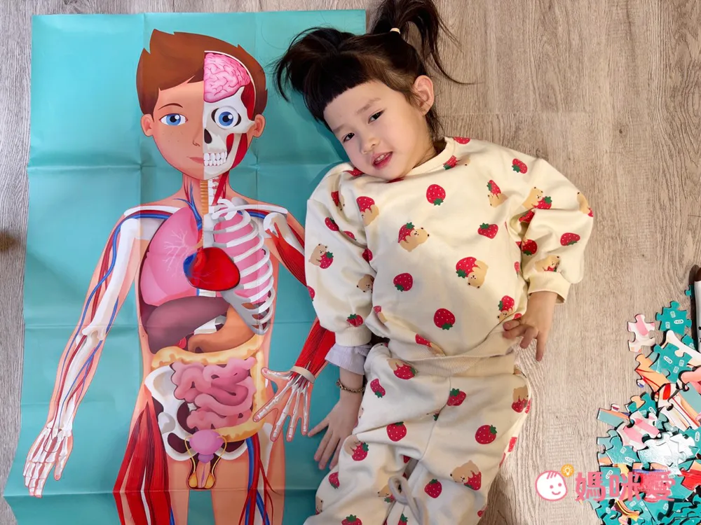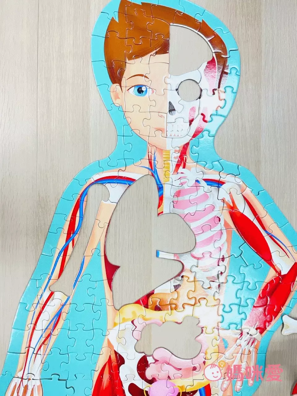重點!這10片拼圖是模擬一位身高130公分的孩子,身體內部各器官實際尺寸進行繪製與裁切,用真實尺寸拼圖讓孩子直覺地理解位各部位的大小。![]()