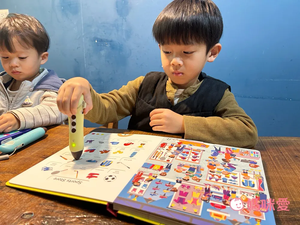 觀看文字視覺學習同時,可以使用點讀筆做聽覺上的學習,不僅能認識語言發音,另外還有聲效模擬物品聲音,更吸引孩子注意!