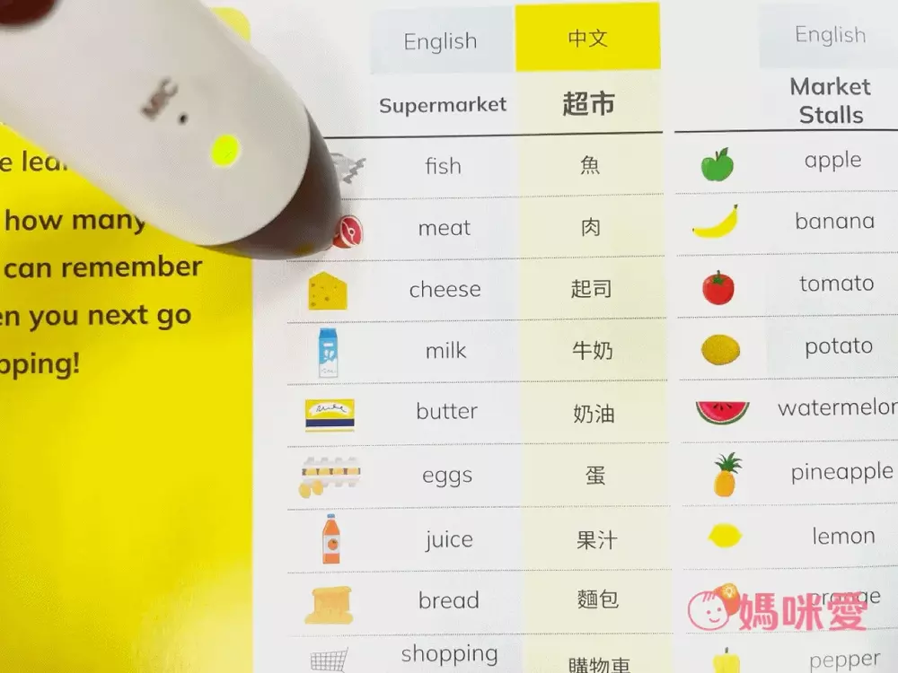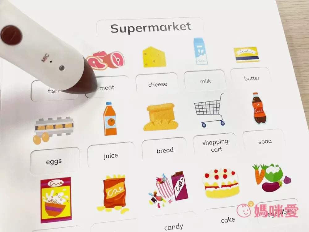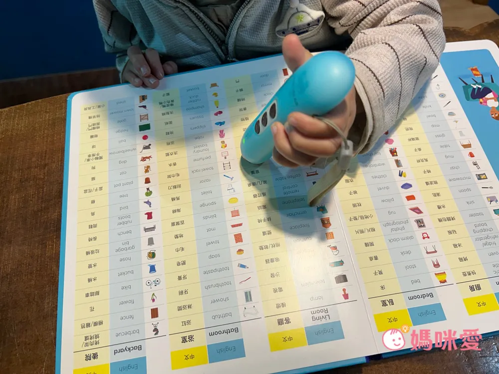 此時搭配點讀筆使用,點擊圖案並聽取發音,引導孩子開口唸,經過多次練習,孩子會很快記住發音並掌握詞彙。