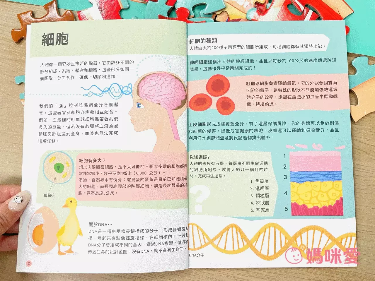 你知道細胞的大小嗎❓血液是從哪裡開始的呢❓是什麼東西可以決定我們的性別呢❓頭髮最長居然可以長達5.6公尺⋯⋯這麼多人體有趣的秘密在拼圖書裡都找得到❗![]()