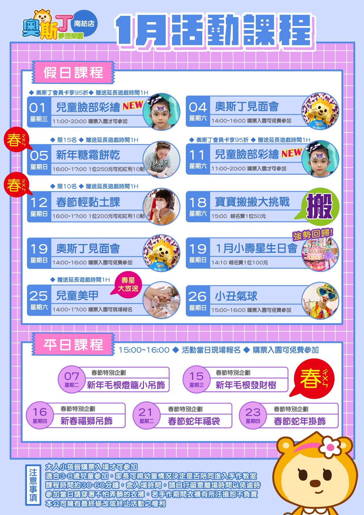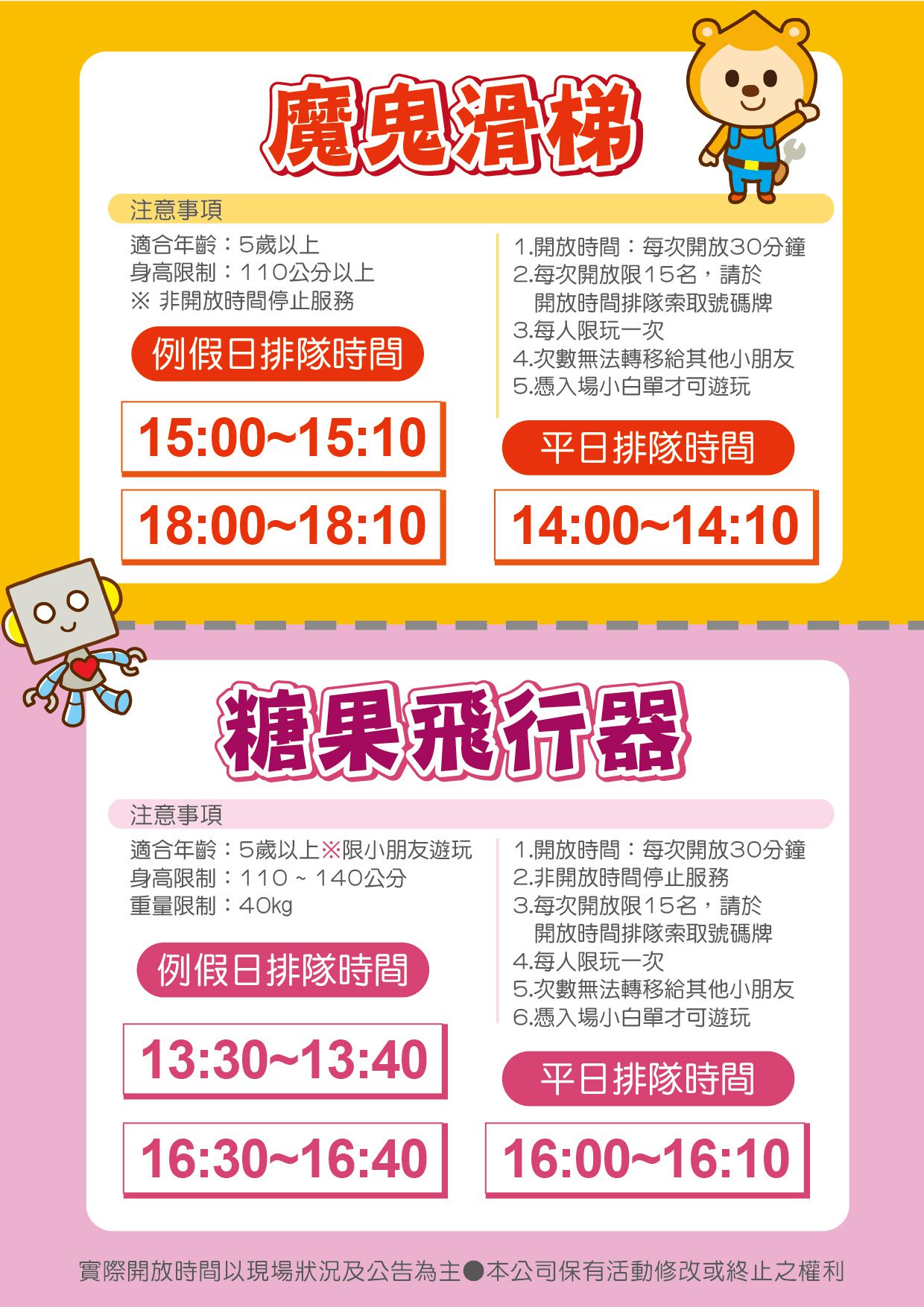 【奧斯丁夢想樂園 台南南紡店】的部分設施有限定時間、場次開放~