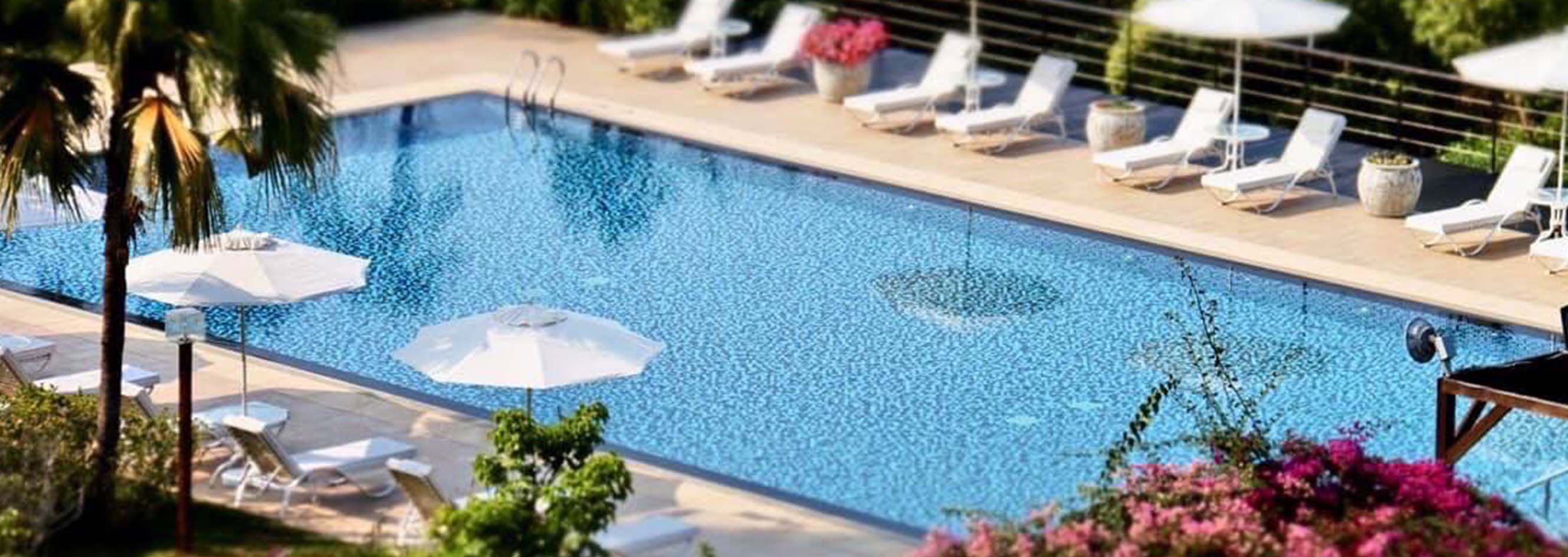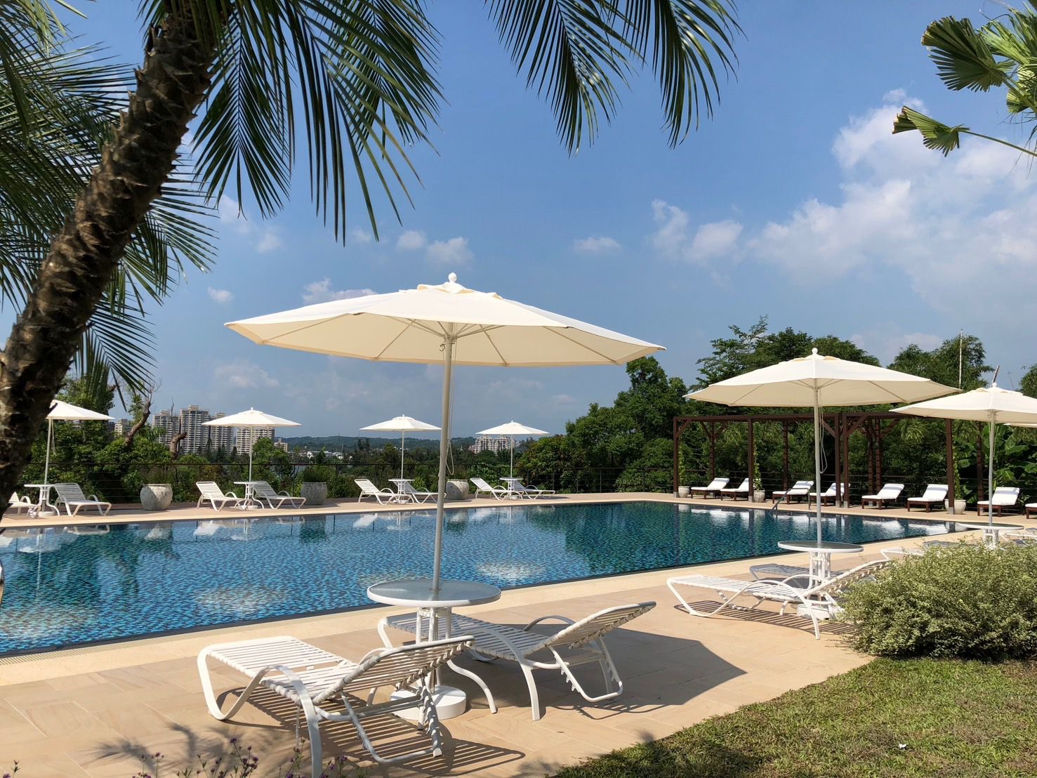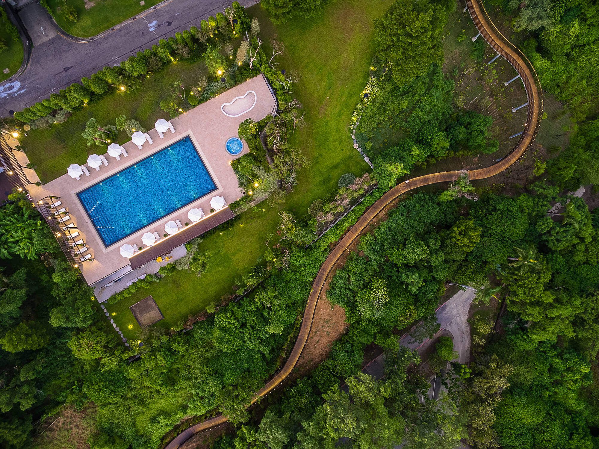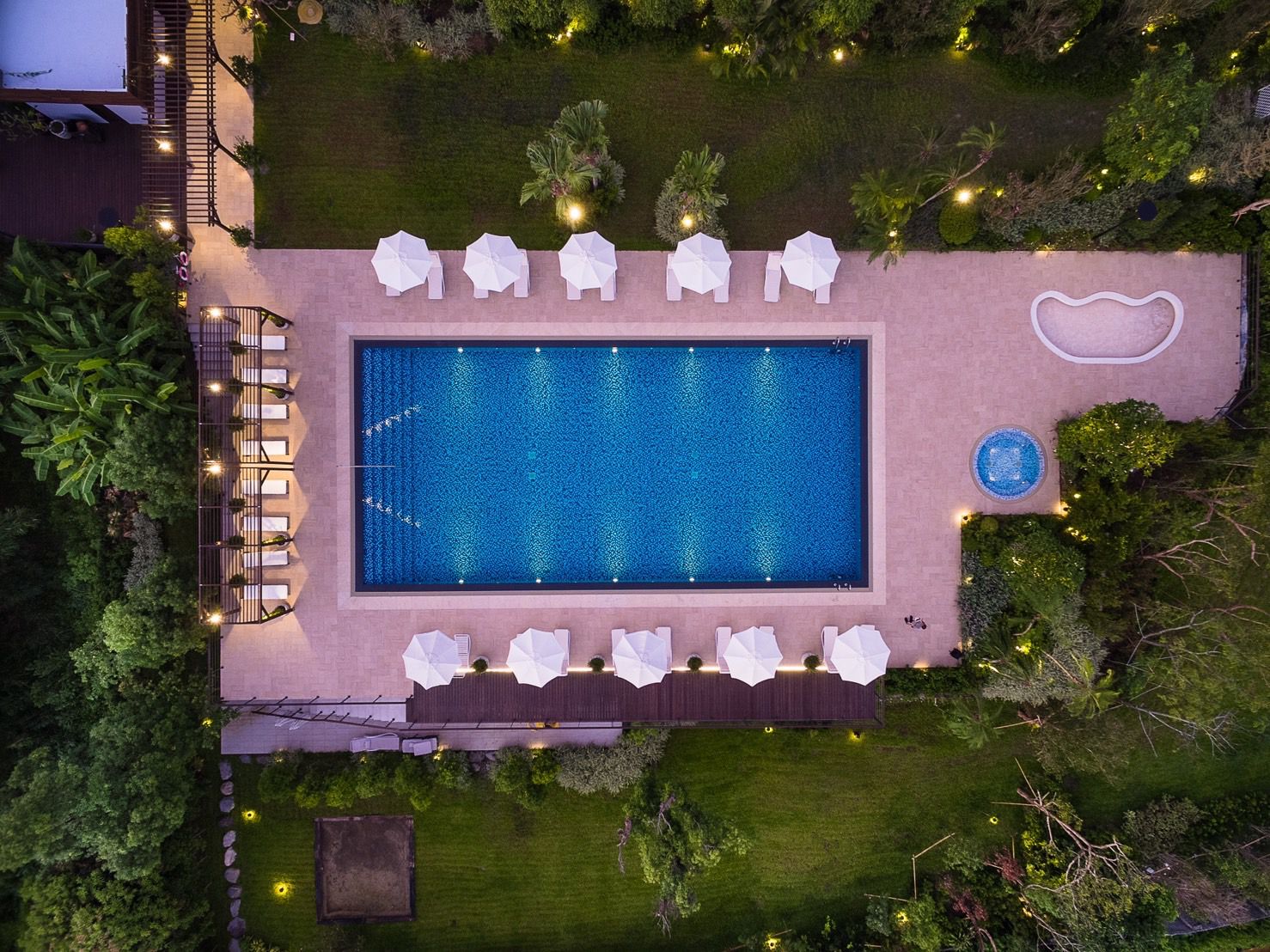 長25公尺、寬15公尺的花園泳池,是高雄最具渡假風格的泳池新設施,白天坐擁藍天綠地,夜晚環繞燈光美景,另設有兒童遊戲池、沙池。在綠林鳥語中讓身心靈放鬆的美麗小天地,靠坐在舒適藤椅上盡享澄清湖邊最濃密迷人的綠林,享用全新量身打造的美味輕食與私廚飲料甜品,讓人在此盡情揮灑隱於市的愜意時刻。