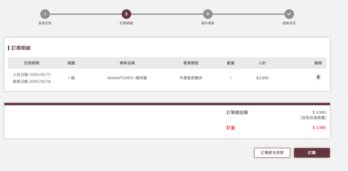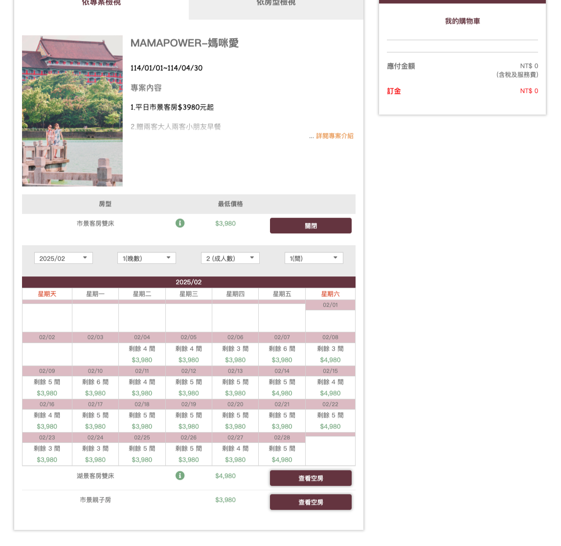 1. 點擊飯店訂房網頁,選擇欲入住房型&日期。(每日限量2間升等市景親子房將依訂房頁面顯示為主,如果沒有出現就表示當天已經額滿喔!)