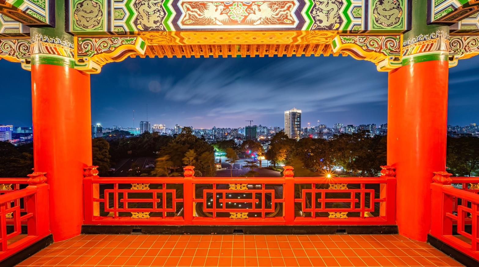 經典的「圓山紅」大景觀陽台,真的彷彿一秒穿越到古代~