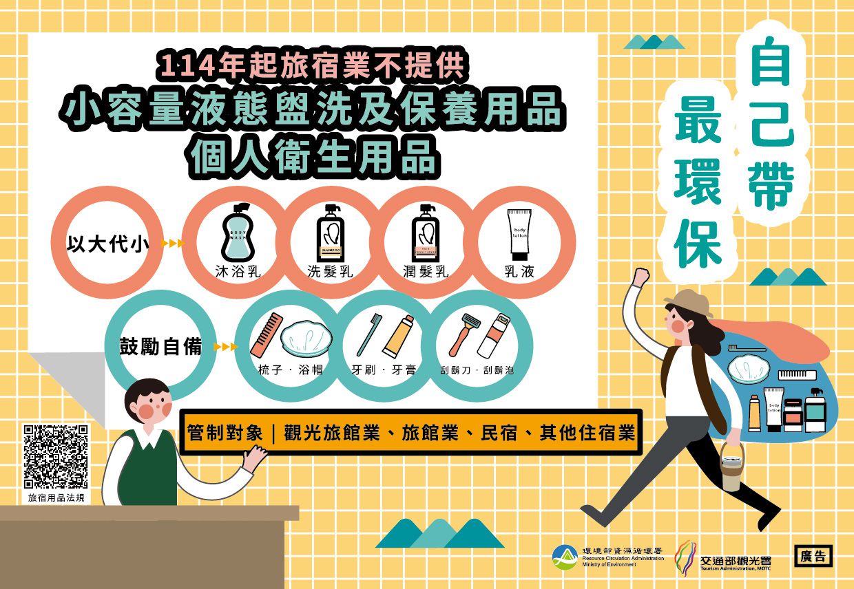 為響應環保,自2025年起,將不提供一次性用品(牙刷、牙膏、香皂、梳子、浴帽、刮鬍刀),若您有需求可至櫃檯選購。我們非常感謝您的理解與支持,並期待您與我們一同推動永續旅遊,減少碳排放,共同守護地球。