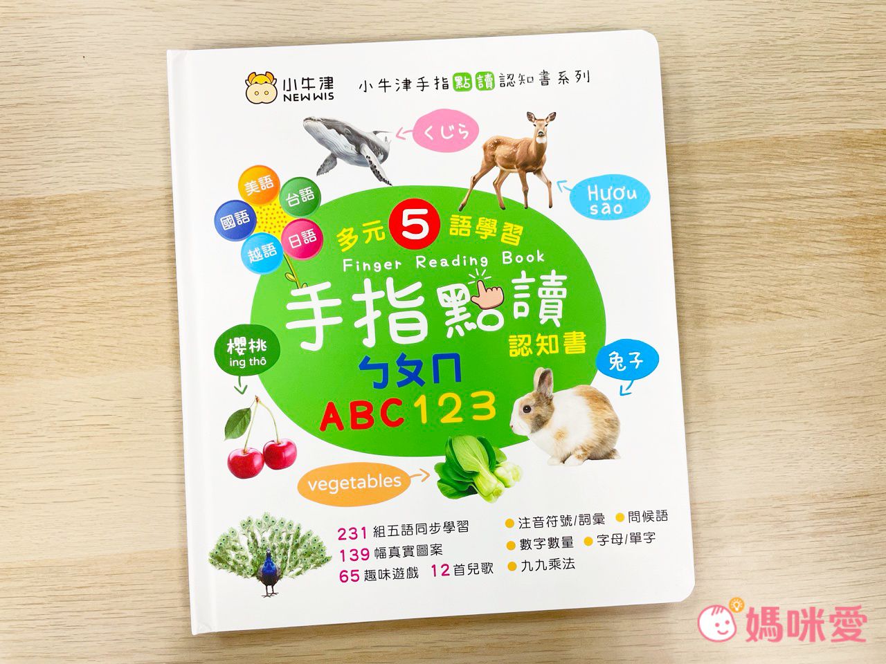 用手指輕鬆按,就可以開始玩的點讀認知書!透過多元的五語學習(國美台日越語)、有聲互動小遊戲,甚至裡頭還有許多YoYo點點名授權的兒歌,小小一本除了能閱讀還能化身音樂播放機,實在是很有趣~