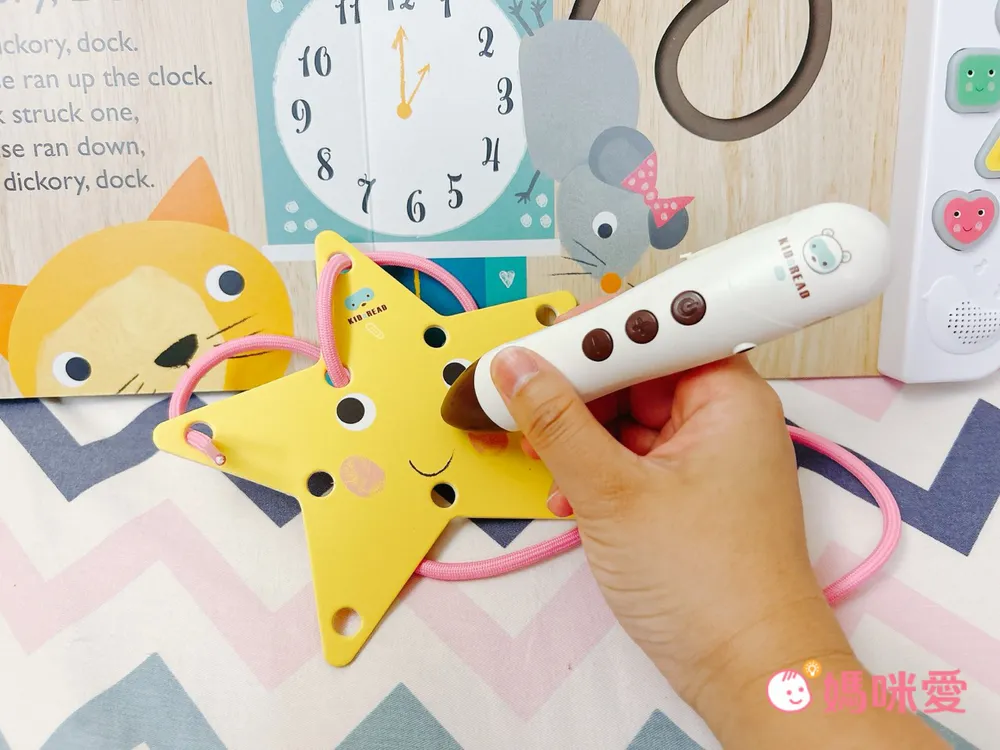而且星星穿線板也能點讀耶!看王紅的表情就知道他有多驚訝🤣點星星上點讀筆標誌圖就能開啟:點正面->輪播五首歌曲|點反面->輪播五首伴奏