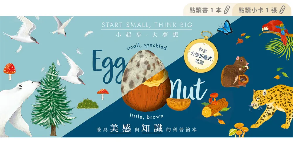 一套有兩種主題:《小小的斑點蛋》、《小小的棕色堅果》。這系列會帶領孩子觀察生命從小小開始,與自然世界的大大結合,再延伸到全球焦點。開拓孩子視野、滿足好奇心及求知欲!